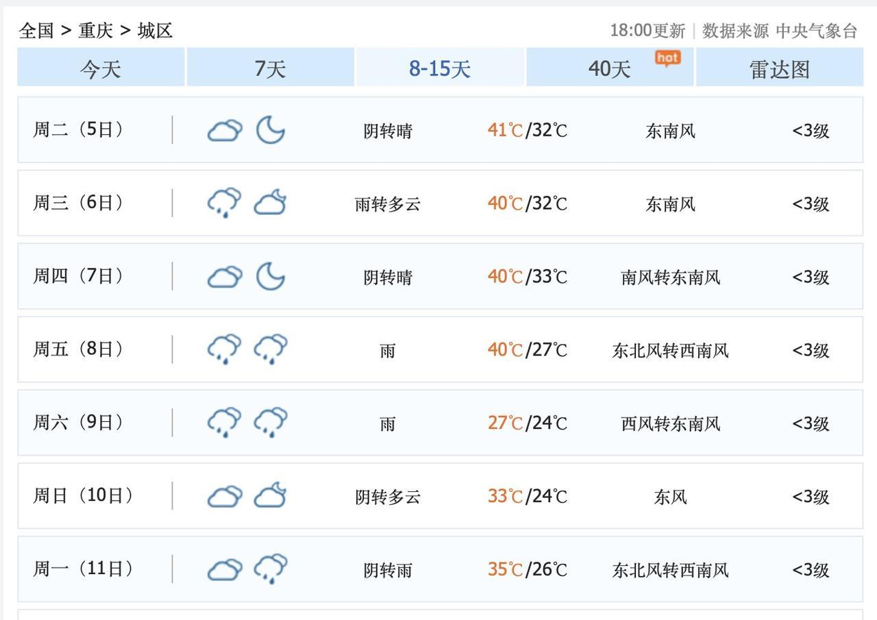 中央气象台最新重庆天气预报,42度高温,真的要来了!7月30日到8月8日,重庆主