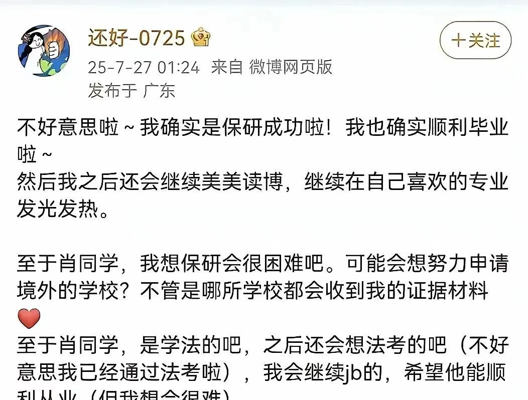 武大的杨某媛这次真的要引起公愤了 不仅是她本人,还有培养出如此“优秀”学生的武汉大学都将受到指责。 一个是以法学闻名全国的名牌大学,在未经严格核查事实的情况下,在当时舆论的压力下,做出不公正的处罚决定。甚至在法院公布判决后,都未能及时撤销处分,还受冤男生一个清白。 一个是已知判决结果,却毫无悔意,不去道歉。在网络媒体上大肆高调宣布自己的保研成功。殊不知她取得的成功建立在别人的家破人亡之上。利用广大网友的善心和同情心,伪装成一个弱者,博得同情,对那名男生造成无法挽回的伤害,一个前途光明的优秀学生就这样被毁了。 从小学校教育的就是德智体美劳全面发展,为何德放在第一位,看来这位女大学生是这辈子都无法理解的。网友的眼睛是雪亮的,造谣污蔑是要付出代价的。万事有规矩方成方圆,道德品质是底线。 支持武大的校友提出的撤销杨某媛学位的请求!正义虽然有时会迟到,但一定会到!