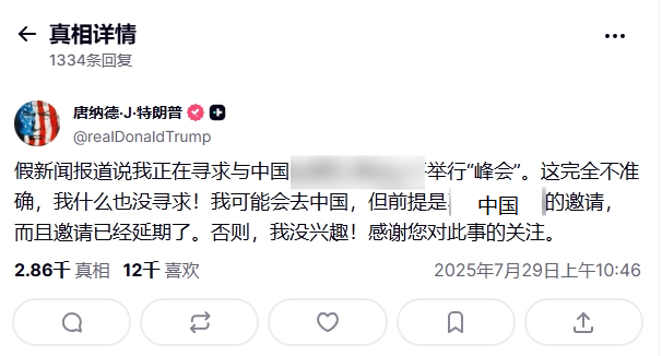 特朗普访华问题再起波澜:必须收到中国邀请才考虑 特朗普近日在社交媒体上回应了关于