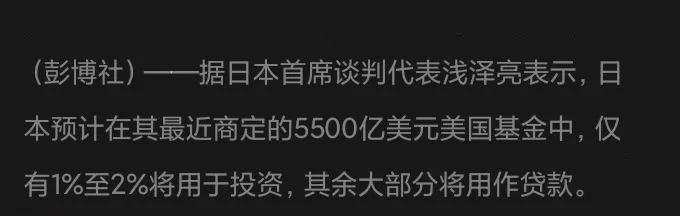 日本:特朗普声称日本对美国投资承诺的5500亿美元中,只有1-2%是实际投资。其