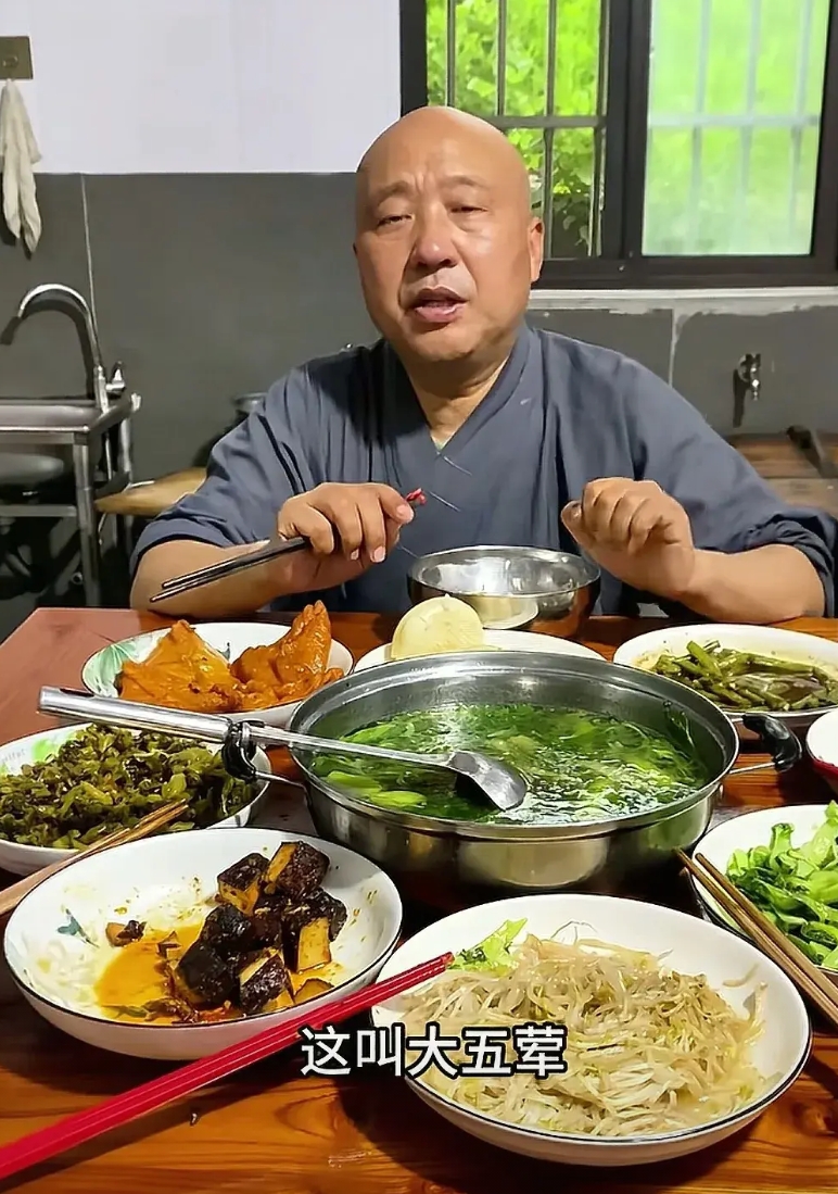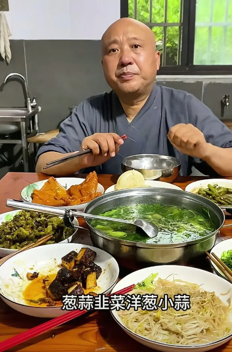 他展示了自己日常餐桌上素食,豆腐不是荤菜,属于素菜,可以吃的。其实除了知道的鸡鸭鱼肉不能吃,人们可不能不知道的是,真正的大荤是葱、蒜、韭菜、洋葱、小蒜,又叫大五荤这是切忌,受了戒的出家人也是不能吃的,而鸡鱼鸭肉属于小五荤,大小是都不能吃的。