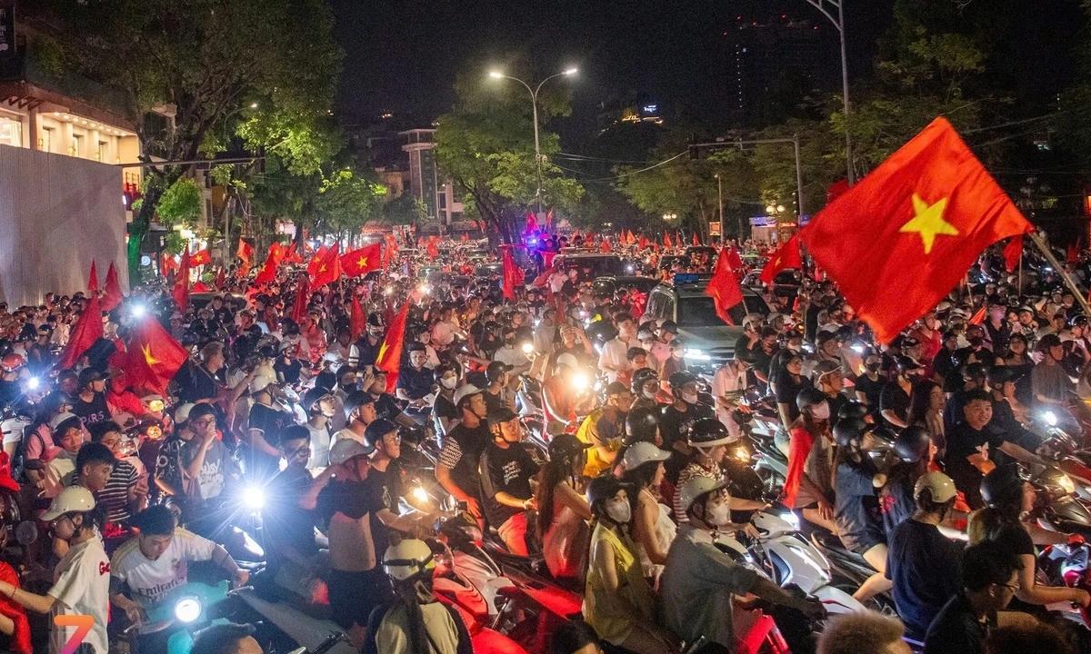 这就是足球被称为世界第一运动的原因,越南拿了个冠军,球迷涌上街头庆祝 7月29日深夜,在U23越南队1-0击败U23印尼队,获得了东南亚U23锦标赛冠军后,越南球迷们沉浸在巨大的喜悦之中,纷纷走上街头,涌向河内还剑湖周边区域,共同庆祝国家队的胜利。 当晚,首都河内的街头洋溢着热烈欢腾的气氛。此起彼伏的“越南冠军!”、“越南必胜!”的呐喊声响彻夜空。 不仅市中心的主要街道人潮涌动,就连纸桥、陶滩等城市出入口路段也聚集了成千上万的球迷。 大约晚上11点,庆祝的人群规模持续扩大,大家自发组成游行队伍,环绕还剑湖骑行。在丁先皇路、黎太祖路等路段,人们不时停下车辆,齐声高呼“越南胜利!”、“越南冠军!”,激动的场面导致部分路段出现局部交通拥堵。 据现场球迷表示,这场胜利意义非凡。U23越南队在本届U23东南亚锦标赛上表现出色,历史性地首次实现赛事“三连冠”,创造了令人惊叹的成就。 这是球迷们久违的狂欢时刻,大家共同为韩国籍主教练金相植及其率领的年轻将士们取得的辉煌战绩而欢欣鼓舞。 从还剑湖核心区域到周边街道,整座城市被国旗的红色海洋所覆盖,人们用热情点燃了夏夜。 面对持续涌入还剑湖区域的人流,警方已设立多个执勤点,一方面引导车辆有序通行,疏散至外围道路,另一方面提醒球迷庆祝时注意安全,避免在马路中央长时间停留。 截至7月30日凌晨1点,河内市中心多条街道依然灯火通明,人声鼎沸。一面面鲜艳的国旗高高举起,一队队庆祝的人群川流不息,欢呼声、呐喊声不绝于耳,庆祝活动仍在热烈进行中。