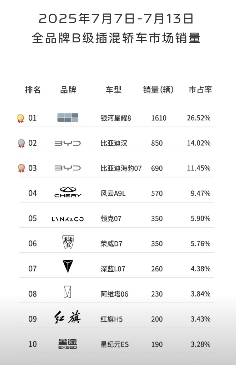 星耀8跟风云A9L并不是一个级别的车。但上次周榜B级显然不应该有风云A9L。这下