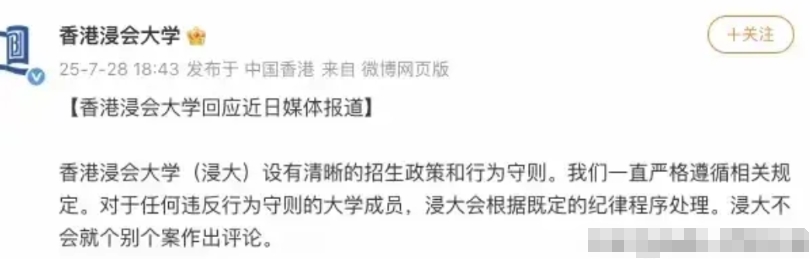 现在全网最后悔的应该就是这位杨同学了,前脚刚在社交软件发文炫耀嘚瑟,后脚就被网友们纷纷发邮件举报,然后还得是香港浸会大学,马上发布声明说“对于任何违反行为守则的大学成员,浸大会根据既定的纪律程序处理”。