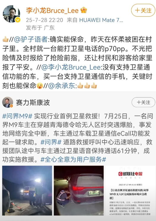 账号『驴子语者』博主在华为李小龙Bruce_Lee分享的没有支持卫星通信功能的车,买一台支持卫星通信的手机,关键时刻也能保命。