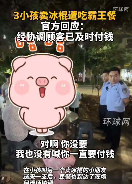 林子大了什么鸟都有!三个小男孩趁着暑假,带着电话手表在街头卖冰棍。一位小男孩在夜市摊位前忙碌着,售卖冰棍到只剩下两支时,一位男子提出要买三支。面对无理要求,小男孩只得拿出剩下的两根,结果男子却不肯付钱,坚决要求第三支冰棍才付款,小男孩无奈跑到派出所求助。网友:吃小孩的霸王餐? 根据环球网7月28日的视频,眼见着学生都开始放暑假,一些孩子就自己买了一些冰糕上街售卖,一些人看到他们,也会善意的买冰糕支持。 这天,三个小男孩相约出门卖冰棍,他们靠着电话手表联系,在不同的地方售卖。 一位小男孩选择在热闹的夜市摊售卖,没过多久,一箱冰棍卖的就剩两根,这时有一位男子表示要三根。 小男孩有点为难的说自己只有两根了,说着就拿出仅剩的冰棍,对方也没说什么,就接过两根冰棍打开吃了。 然而等男孩要钱的时候,男子却无理取闹的表示,自己要的是三支,必须把三支拿齐了自己才付钱。 小男孩也不干了,哪有这种吃完了,不给钱的道理,这不是霸王餐吗,小男孩就说可以替他们去跑腿买,给两块钱的跑腿费就行,男子依旧表示不行。 眼见男子怎么样都不给,他只好跑到附近的派出所找到民警,还叫来了其他地方的小伙伴。 警察到现场的时候,小伙伴也带着第三支冰棍来了,在调解中,一位好心的大哥看不下去了,和男子发生冲突,民警连忙将双方拉开。 经过调解,第三支冰棍也给了男子,冰棍钱也付给了小男孩,这事才算告一段落。 事情一出,网友纷纷表示,挺大的人了,就因为两个冰棍儿,去为难人家孩子,真是不知道说什么好了! 也有在场的网友表示,钱并不是男子付的,而是烧烤店的老板娘看不下去付的,这种人真是把祖宗的脸也丢尽了! 对于这件事,大家有什么想说的呢?欢迎在下方分享分享!