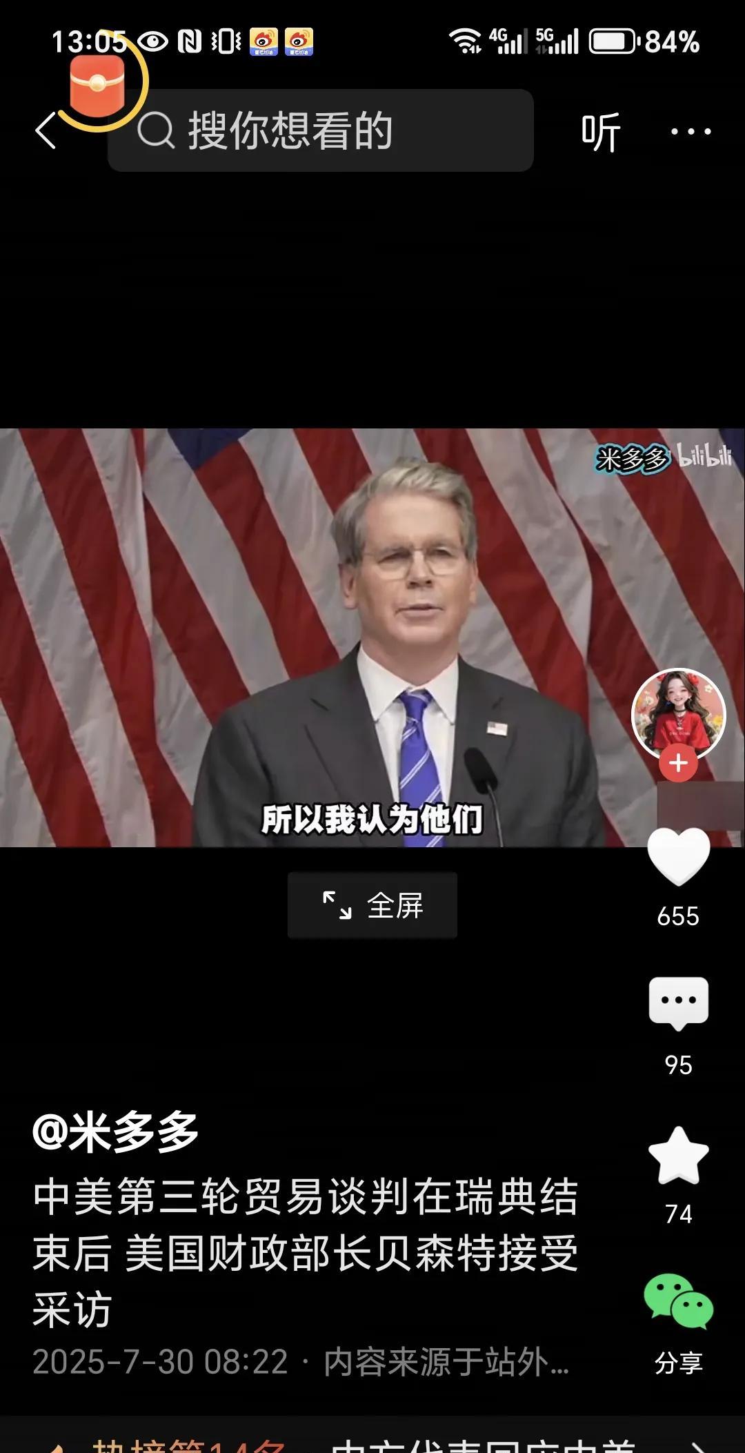 美国财政部长也没招了。 中国代表团太强硬了 7 月 28 日至 29 日, 中美经贸会谈在瑞典斯德哥尔摩举行。 在此次谈判中, 中国展现出了绝不屈服的态度。 虽然美国财政部长认为他们近期搞定了欧盟和日本。 对这两大经济体征收 15% 的关税。 然而, 而且还逼迫这两大经济体购买美国的军火、 石油、 天然气。 农产品, 并要对美国进行巨额投资。 然而, 在此次中美会谈中他们却碰到了钉子。 比如, 他们威胁中国, 如果继续购买俄罗斯和伊朗石油, 将会被加征 100% 关税。 然而我们中国直截了当地回答这个问题是中国的主权, 中国想买谁的石油就买谁的石油。 不容谈判。 就连美国总统也在英国接受记者采访时表示, 他已收到了美国财政部长贝特森给他传递的信息, 认可了中国在这次经贸会谈中态度非常强硬。为中国代表团点赞, 我们中国有这个实力, 绝不能像越南那样, 被美国征收 20% 的高关税, 而且还要对美国完全开放市场, 对美国商品实行零关税。 像这样的贸易协定, 我们中国绝不能接受。 现在越南股市已经暴跌了。 其实美国更需要我们中国的产品, 也更需要我们中国高性价比产品给美元背书。