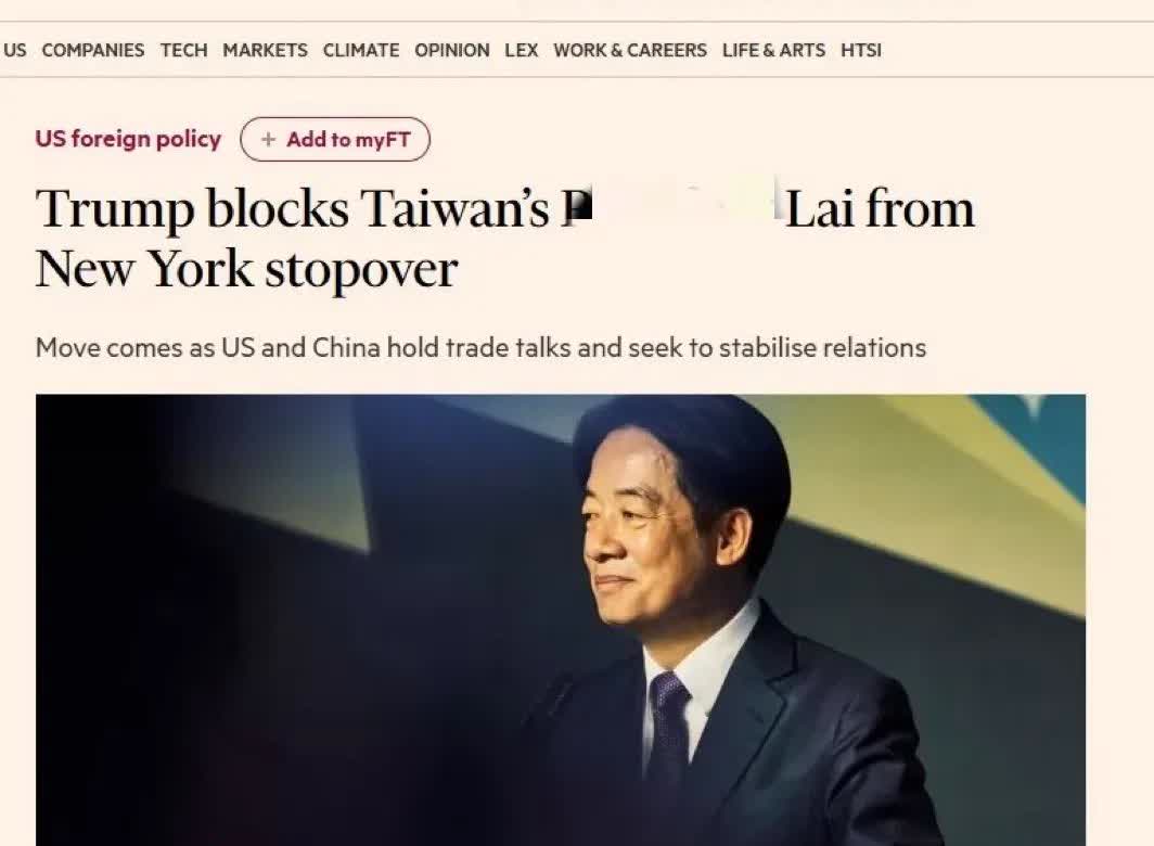 佩洛西今天(7月29日)了解到特朗普拒绝赖清德过境窜访纽约的消息后写道:“唐纳德