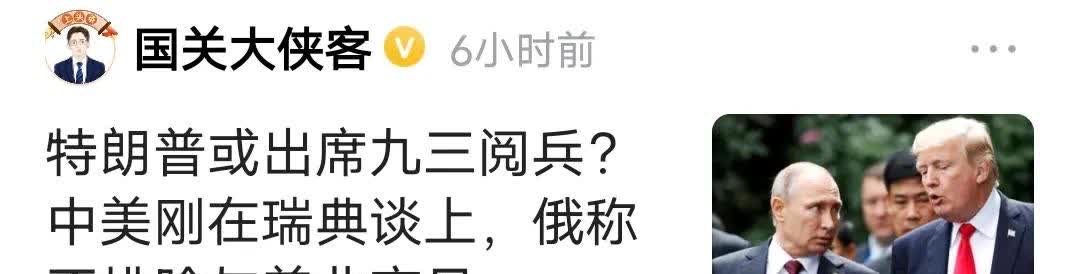 不要再谈特朗普有可能参加9.3阅兵了,我们阅兵对他来说不重要,他来不来对我们来说也不重要。 特朗普要的是利益是钱,对其他的根本不感兴趣,在斯德哥尔摩的谈判八字还没一撇,不过是再延期90天,他来干嘛?就为见见普京吗? 最早爆料特朗普参加9.3阅兵的是日本媒体,有脑子的人都知道是日本媒体故意制造舆论使绊子。 现在俄媒也在积极推波助澜,目的很明确就是要借助9.3阅兵平台实现特普线下会晤,为自己解套而已。 特朗普来不来真的不重要,重要的是我们把自己的事情办好就行了。