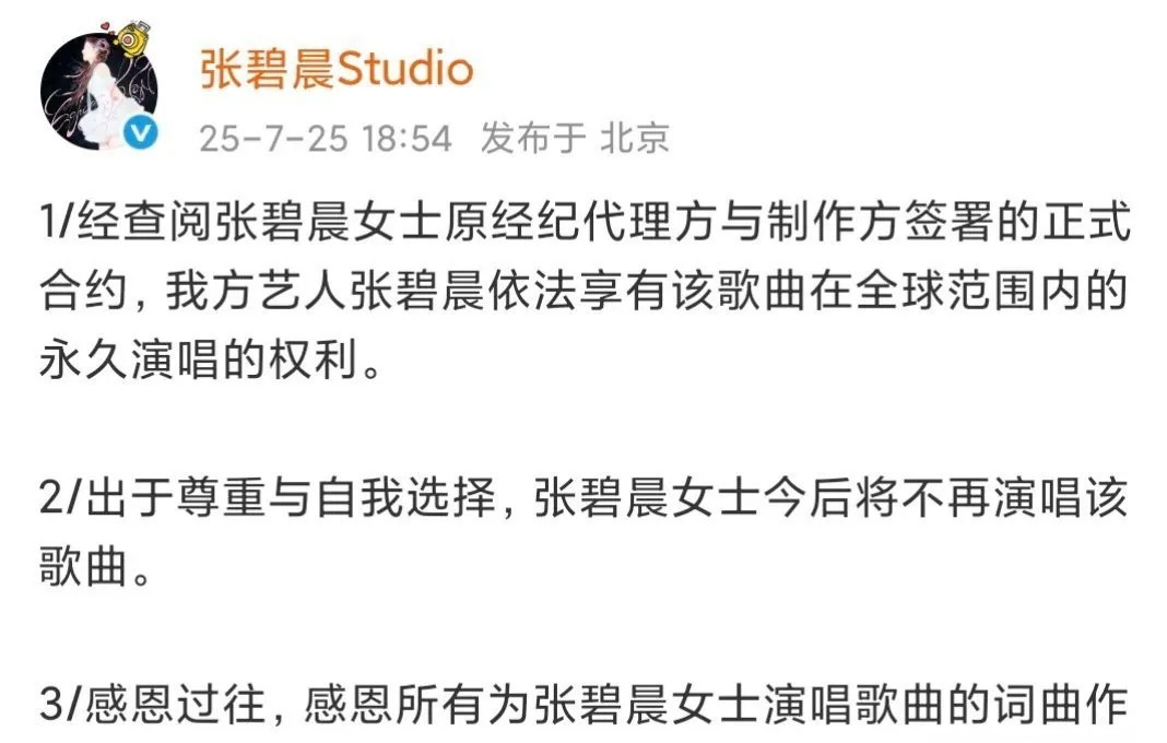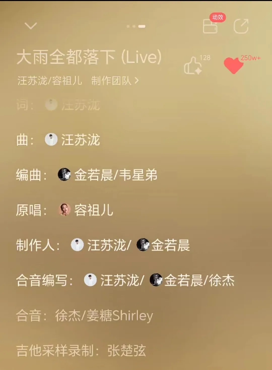 汪苏泷的版权意识挺强的。就像《就让这大雨全都落下》是他写的,但原唱是容祖儿。星光大赏上,他顺口夸王鹤棣唱得比原唱好,反应过来后赶紧多次向容祖儿道歉。 这能看出他尊重版权和原创。要是《年轮》原唱版权给了张碧晨,他肯定会认,可这么多年他一分版权费没收过,张碧晨却坚持自己是唯一原唱,这就说不通了。