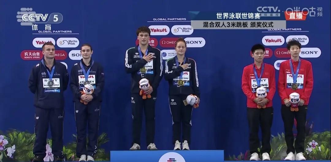 致命一跳,痛失金银!程子龙/李亚杰梦碎混合3米板 7月30日下午,世锦赛跳水第五个比赛日,程子龙/李亚杰出战混合双人3米板决赛。 此前,中国跳水队已夺得7枚金牌,仅非奥项目女子1米板金牌旁落。程子龙参加混合团体赛和男子双人三米板决赛,均夺冠而归。李亚杰摘取女子1米板银牌。 混合双人3米板,也是非奥项目。本届赛事没有预赛。20对选手直接参加决赛,按抽签顺序出场。中国组合第九个亮相。 前两跳为规定动作,后三跳为自选动作。 第一轮,中国组合跳出51.60分,领先第二名整整3分。 第二轮,中国组合又跳出51.60分,总分103.20分,比并列第二的两组选手高出9分。 第三轮,自选动作开始。中国组合跳出72.00分,总分175.20分,领先优势扩大至11.70分。 第四轮,中国组合出现失误,仅得58.50分,总分233.70分。随后,出现罕见一幕。多米尼加组合出现严重失误,各跳各的,跳出全场最低分16.20分。意大利组合发挥出色,跳出75.33分,以总分238.83分反超中国组合5.13分。 第五跳,也就是最后一跳。中国组合跳出72.00分,总分305.70分,比随后出赛的意大利组合高出66.87分。而意大利跳出69.30分,总分308.13分,再次盖过中国组合。澳大利亚组合鼓足余勇,跳出全场最高分79.56分,总分307.26分,也超越中国组合,排名第二。 因一跳失误,中国组合一路下滑,最终名列第三,与金银牌失之交臂。