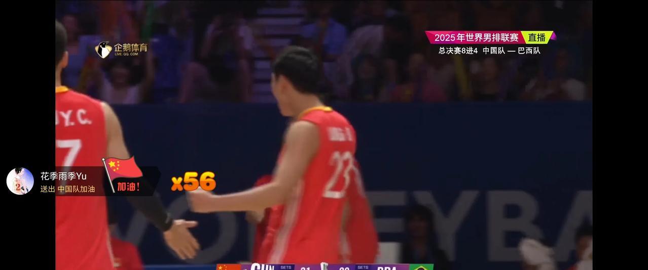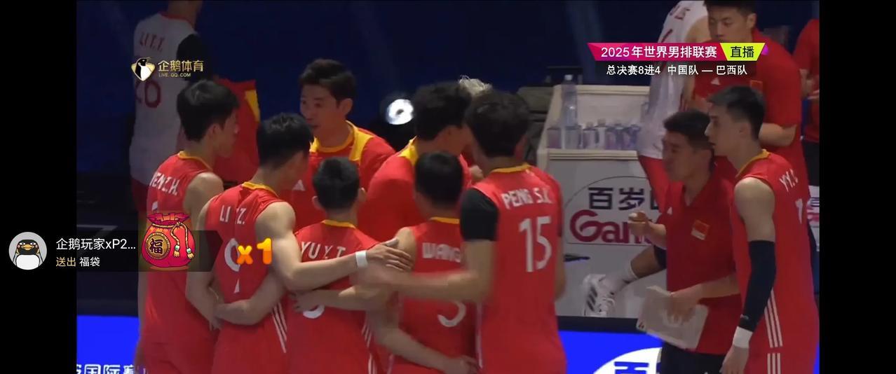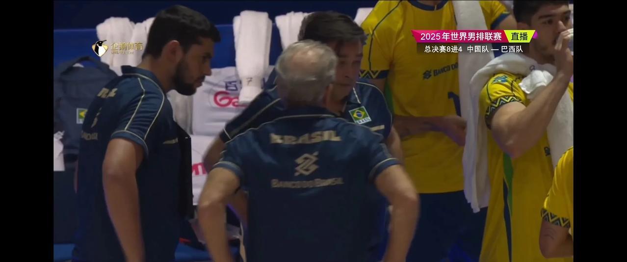世界男排联赛总决赛八进四淘汰赛,中国男排对阵巴西男排的比赛刚结束第一局,中国男排