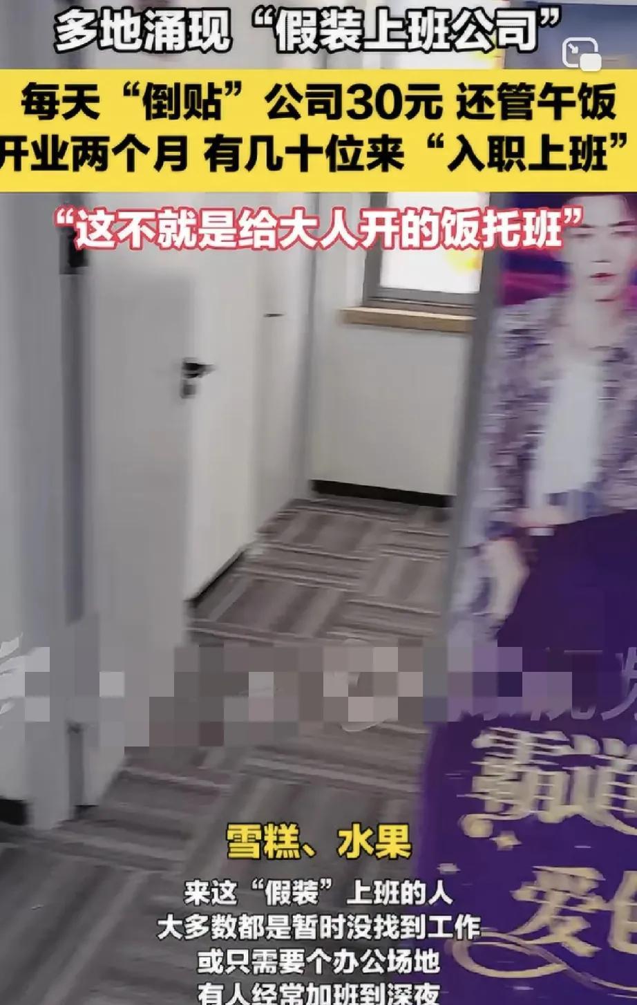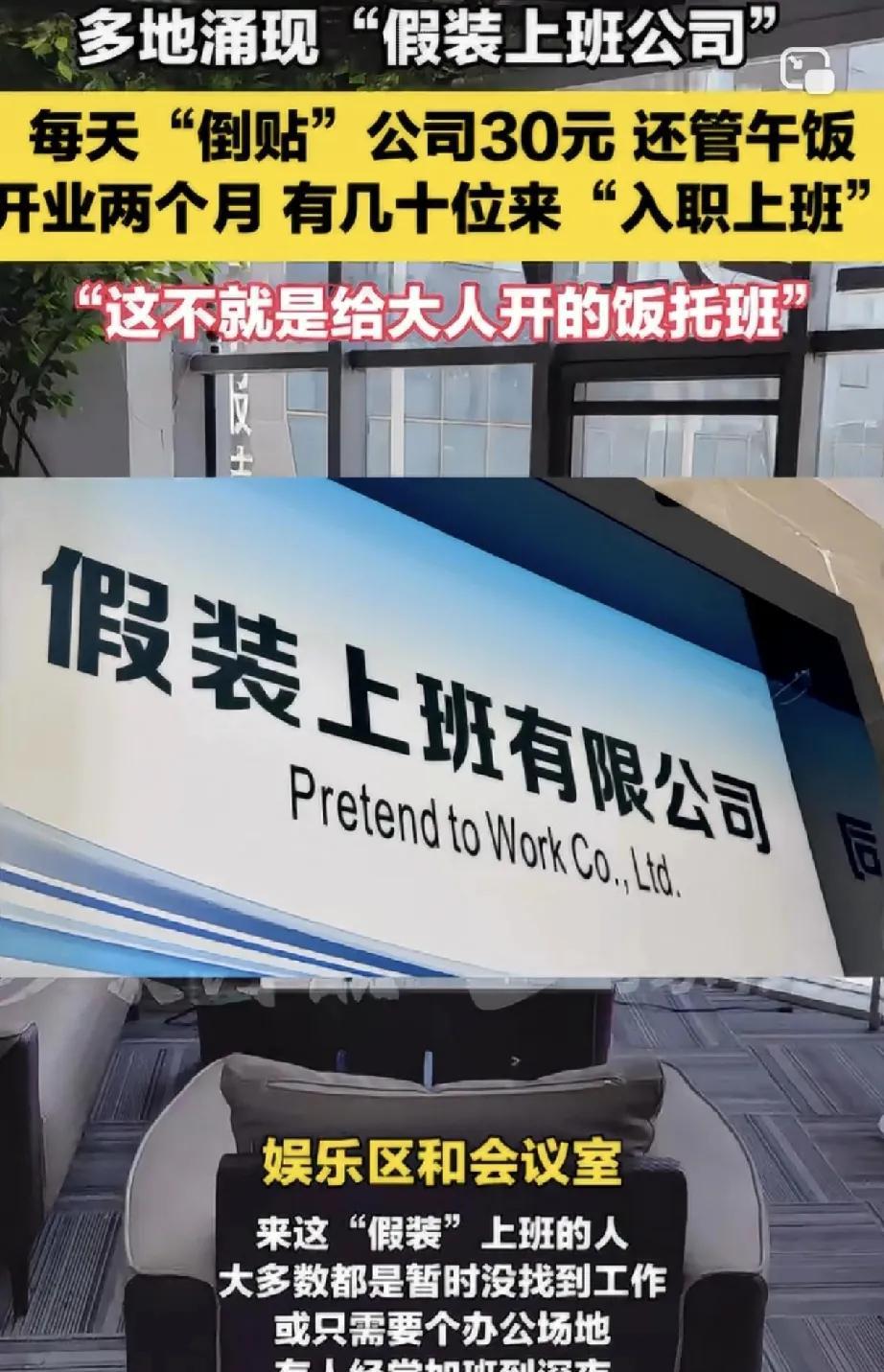 杭州一家“假装上班无限公司”在网上火了。据公司老板表示,这家公司主要为那些近期失业的或是想瞒着家人假装上的人提供业务。而来这家公司“假装上班”没有工资,每天还需要交30元“假装上班”费,当然公司会为假装上班的人提供“朝九晚五”的付费上班服务。 据悉,这家公司的办公场地有400多平方米,除了工位,还有接待室、会议室等,并提供设备齐全的直播间。期间,不但为大家提供空调,大家还可以在自己的工位上玩手机或是干其他的事,而且到了中午还管中午饭。 据老板介绍,开张两个多月以来,已有三四十人前来“假装”上班了。而这些人中,大多数都是暂时没找到工作或只需要个办公场地的,这些人都很上进,经常加班到深夜。 而老板看到公司为这些人提供了一定的帮助后,也是非常欣慰,他也希望公司能够给这些人一个缓冲地带,让他们重拾工作节奏,感受职场氛围的空间,或许他们也只是需要一个机会吧。就像公司的口号一样,让假装上班变成真上班! 而这特别的公司被发到网上后,也是很快引起了网友们的关注和热议。 有网友就表示:这种公司不错,解决了不少人暂时失业的焦虑,而且那三十元的费用,可以免费吹空调用水电网,甚至还包一顿饭的操作,比网吧实惠多了。非常有创意。 还有网友表示:刚做居家客服的,去这里工作简直不要太方便!在家置办一套办公设备至少好几千,这里一天才30元,划算! 不过也有网友表示:公司的服务确实很特别,但个人觉得还是有点自欺欺人。要不然明明可以找个送外卖哪怕是刷盘子的工作,一个月也能挣几千块,又何必自己骗自己,花30元一天去“假装上班”呢? 多的不说,这公司的服务项目确实挺创新的,特别适合那些创业的租房子贵的,每天来这里花30元租个工位多省心啊,针对这方面还是可以有的。但那些暂时失业的,个人觉得还得多花精力找工作,不然整天耗在这里“假装”上班,也不是一个事。 对此大家怎么看? #头号创作者激励计划#