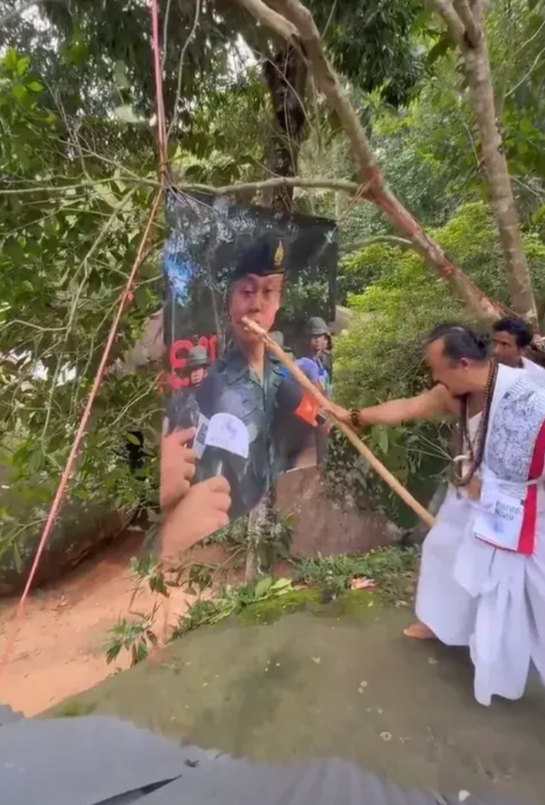 这些柬埔寨巫师对本辛的照片各显神通,包括棒戳、运功、劈打、念经等等不一而足。 不得不说,柬埔寨是真心不服啊,尤其是前线丢失了茄子山,还有大片领土,部队打不过,开始巫师上场了。就是柬埔寨巫师的效果怎么样,本辛将军有没有应对之策。