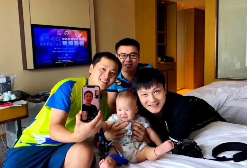 今天,国乒队员郑培峰在社交媒体上晒出了和樊振东等好友在厦门乒超的聚会,小胖将郑培峰的儿子抱在怀中,大宝贝搂着小宝贝,小胖脸上洋溢着温柔的笑容。