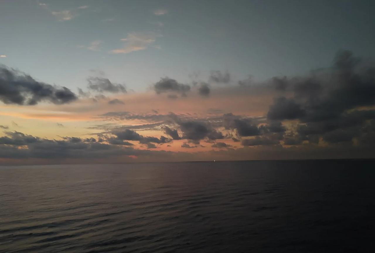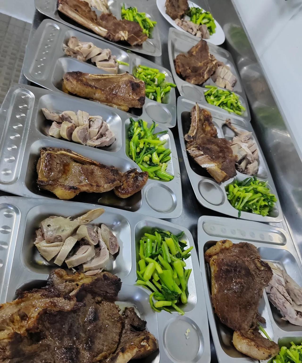 自从国内上了伙食后,做夜宵的没有了,煮方便面的也没有了,康师傅方便面拿出来了十天了,到现在一箱也还没有吃完,而且多数是值0-4的船员吃的,放到以前,一箱方便面三四天就给干完了,鸡蛋放在厨房里随便吃的,也没人吃了,每顿饭都吃的饱饱的,今天中午每人两个桃子,有船员问,桃子吃完了吗?再吃不完就要坏了,其实库房里还有一箱油桃,因为油桃还是比较耐放的。马上就到澳洲了,水果到现在只吃完了香蕉和荔枝,还有很多水果一次都没有吃,果汁天天有,喝完了就到库房里拿,冰激凌两个餐厅的冰箱里塞的满满的,这几天也是没人吃了,都吃够了,这个航次的伙食我感觉是不能再挑剔了。 吃了晚餐,我端着碗从餐厅往厨房走,正好领导也吃完了,从他们餐厅经过厨房,来到我们餐厅看到我后说,实在是吃不完了,我说是啊,实在是吃不完了,今晚的牛排太大了,每人一块太过瘾了。 (下图是今天晚餐:牛排,盐水鸭,素炒菜心和蘑菇蛋花汤)