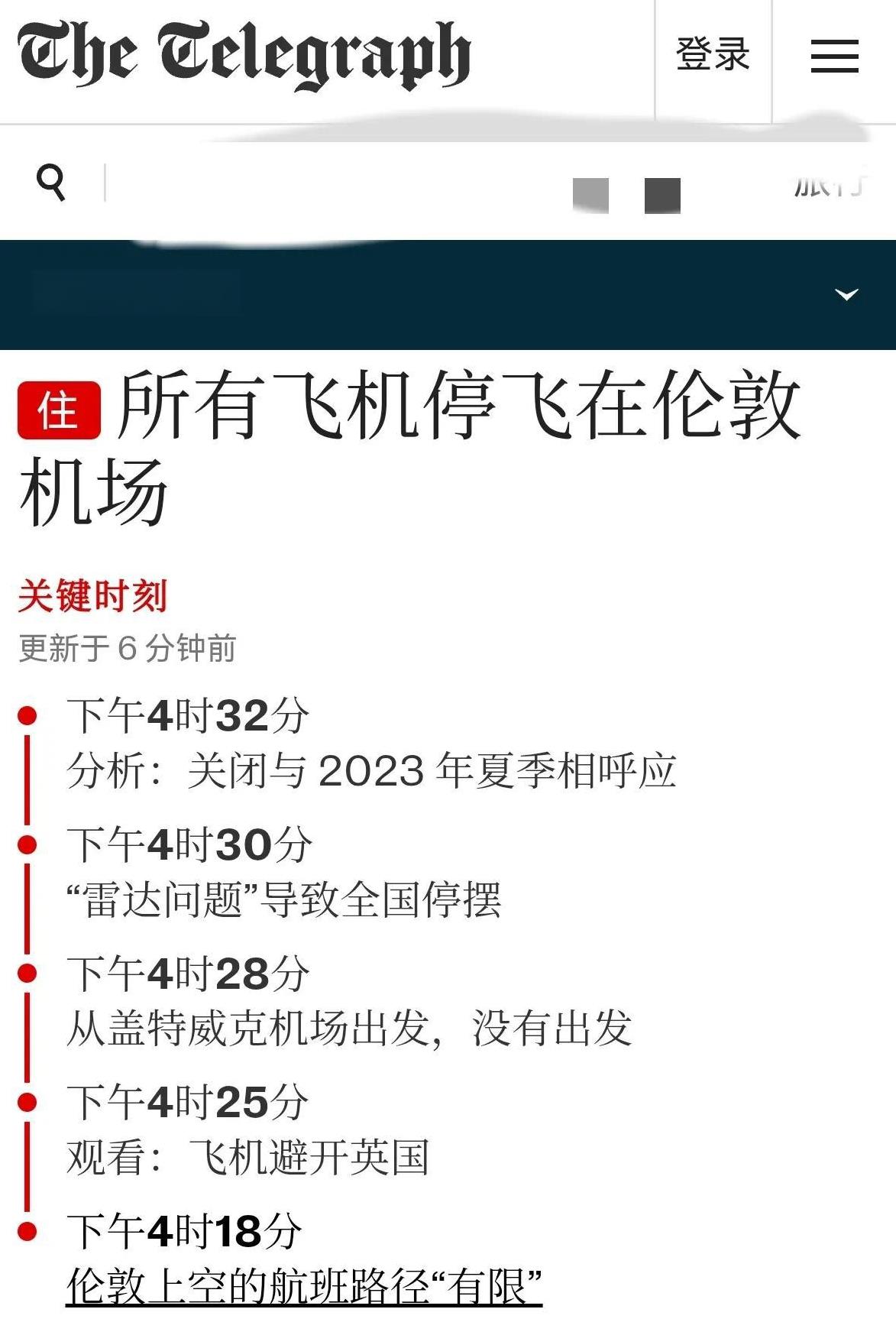 啥情况英国伦敦全境空域封锁,据称是技术故障造成的系统级崩溃。 英国空管官方已经承