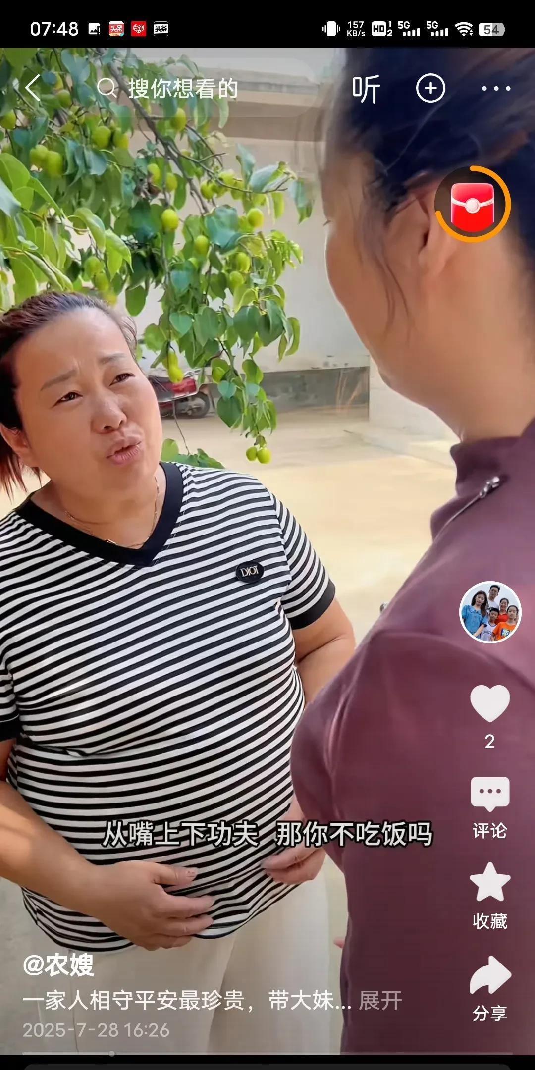 农嫂为了卖减肥餐,把胖妹妹拉来做宣传,让她试用瘦身神器。要是妹妹真瘦下来,那减肥效果眼见为实,就太有说服力了,网友看到效果显著,肯定会对这产品深信不疑,下单那是自然而然的事,农嫂这广告的目的就达到了。 不知道农嫂的胖妹妹试用瘦身神器会不会有啥意想不到的事儿发生。咱就静静等着看她能不能瘦下来,给这减肥餐来个实力代言。