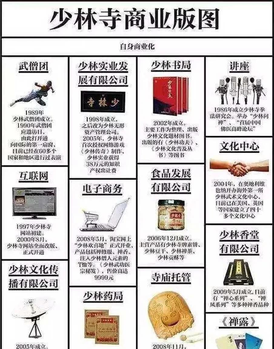 原来少林集团的收入,不少来自在外运营的寺庙! 去年,小编到外地去旅游,偶然发现那里的一座千年古刹,主持竟也是一位少林弟子。 一问才知道,这座佛寺多年前已经被少林(商业)集团接管、经营了。 呵呵,这有点像去外开设分公司,少林集团输出自己的品牌和人才管理,与当地有关部门达成代运营协议,便顺势接管了外地寺庙的人财物大权。 如此一来,不停复制,分布在各地的寺庙门票、香火钱等经营收入,便会源源不断地流向少林集团公司财务账户。 少林集团的生意越做越大。一项统计表明,去年全寺旅游收入突破8亿元! #头号创作者激励计划#
