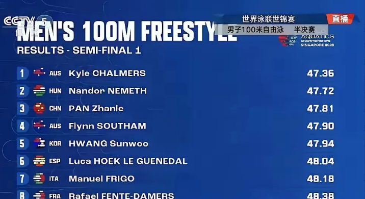晋级赛制有问题。 潘展乐所在的第一组半决赛只有前两名进入到决赛,