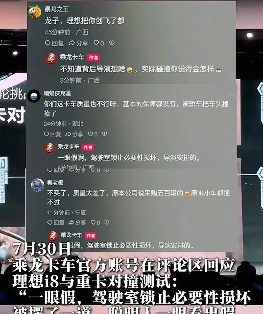 理想这次玩脱了,为了证明他们车的质量和安全,安排和卡车对撞,结果卡车公司安排法务