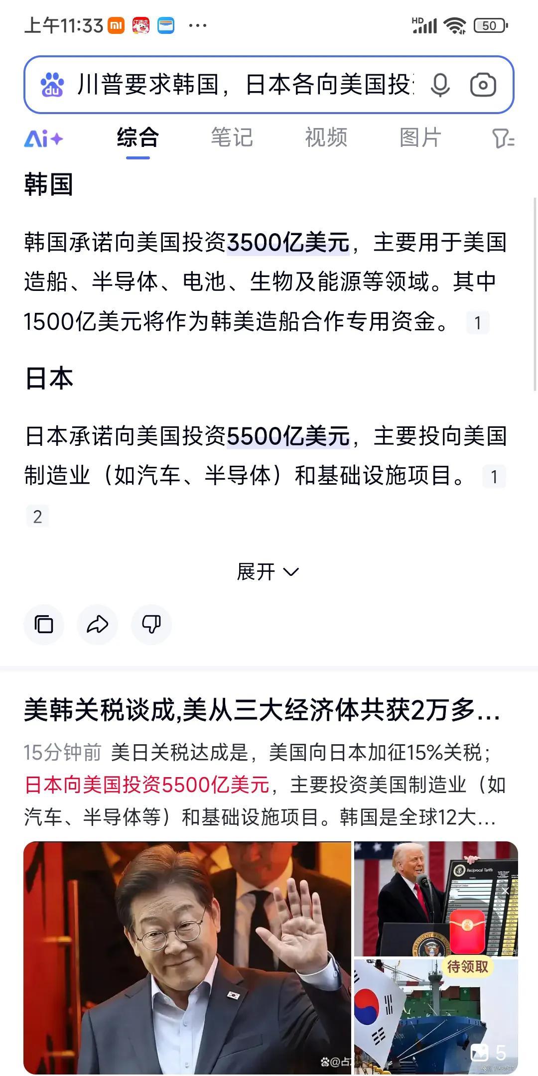 美国这个恶霸,世界霸主依旧我行我索,关税战加大棒战。 美日关税达成协议,日本出口美国商品征收15%的关税,且要求日本去美国投资5500亿美元,耍求日本进口美国大米。 二,美韩关税达成协议,韩国出口美国商品征收15%关税,并要求韩国去美国投资3500亿美元。 美国跟沙特达成协议,末来四年,沙特向美国投资6000亿美元,还有卡塔尔,阿联酋,向美国投资几仟亿美元。这些国家向美国投资超2万亿美元,美国优先,牛逼克拉斯。关税加投资,不听话削你,对印度还要征收25%的关税,对巴西征收50%的关税。欧盟15%的关税,美国全世界剪羊毛。#美国全面关税# #美国新全面关税# #美征收关税# #美国全球关税# #美对华加关税# #美全球关税大战# #美关税# #美国对华征关税# 中美还在谈判关税。