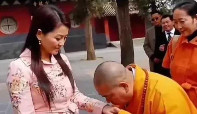 2008年,释永信亲吻李湘手的画面,让李湘很尴尬。 李湘因何尴尬,她怎么也想不到