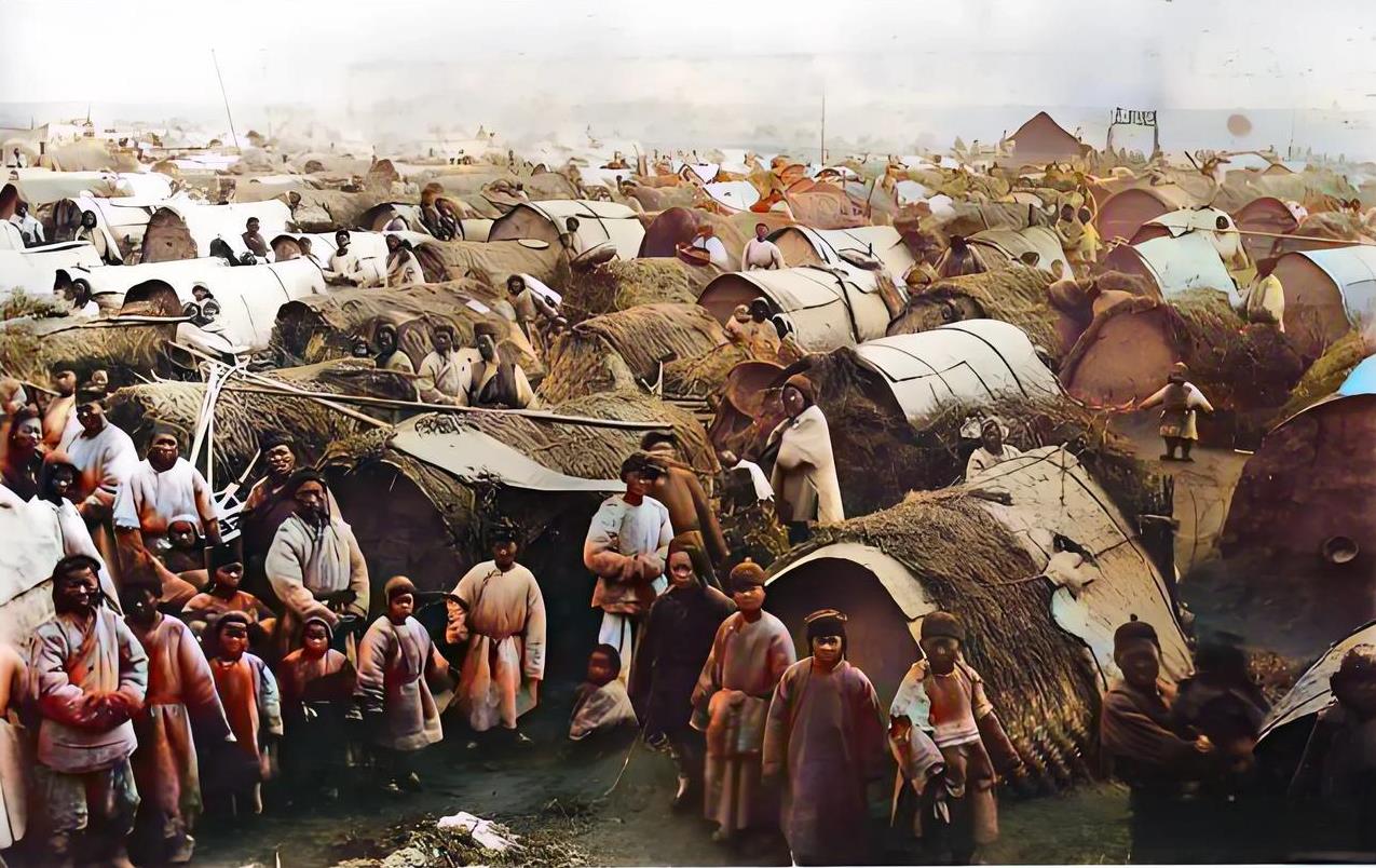 饥饿的盛世,绝望中的生存挣扎 这就是所谓的满清“康乾盛世”到处是绝望的饥民灾民,一个外国人说“中国在满清的治理下不但没有进步,反而是倒退了,连我们丢弃的残羹剩饭都有一堆中国人抢着吃”。 1876-1879年华北连续4年没有下过一滴雨,山西14个县遭遇了千年一遇的旱魔,200天滴雨未下。画面中10位灾民饥肠辘辘、骨瘦如柴、衣衫褴褛,他们身后是坍塌的茅草顶土屋。这场饥荒导致河南饿死300万人,山西每天约1000人死于饥饿,逃荒路上甚至出现“易子相食”“割尸肉充饥”的人间惨剧。 天灾背后是人祸,清政府救灾不力,不管老百姓死活,朝廷发放的那点赈灾粮被腐败官僚层层盘剥,发到灾民手里粒数可数,灾民们只能啃树皮、吃观音土,甚至出现卖儿鬻女、家庭破裂的悲剧。 这场灾荒直接动摇了清王朝统治根基,也催生了近代慈善事业的萌芽。#牢记历史爱我中华# #分享真实的历史#