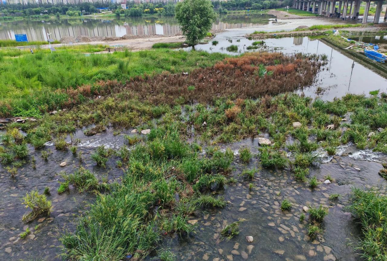 上午,莲石西路,跨永定河高架桥下看到河水明显增多,以前桥下很窄,很多水鸟在嬉戏!