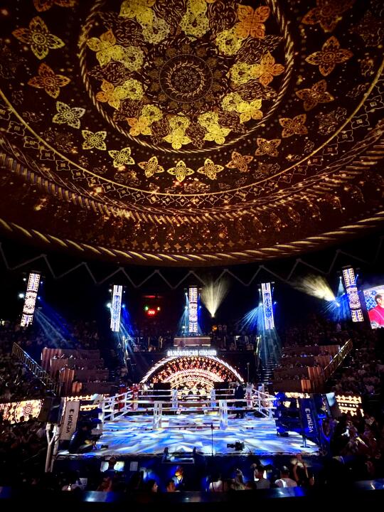 这家Rajadamnern Stadium拉差达慕拳馆🇹🇭不仅是泰国最high的泰拳圣地,也是文化与视觉的极致结合‼️超嗨的氛围 搭配精彩的表演 本以为是单纯的比赛🎭没想到是真枪实弹的拳拳到肉💪不管是灯光音效还是现场设计 拍照每一帧都超出片的🥰