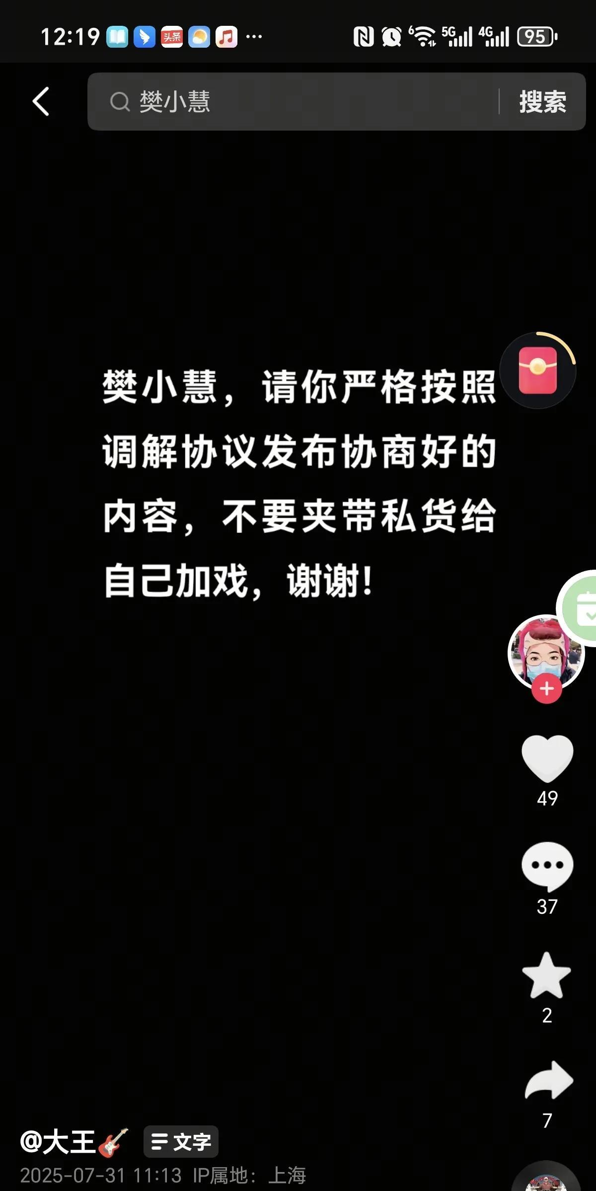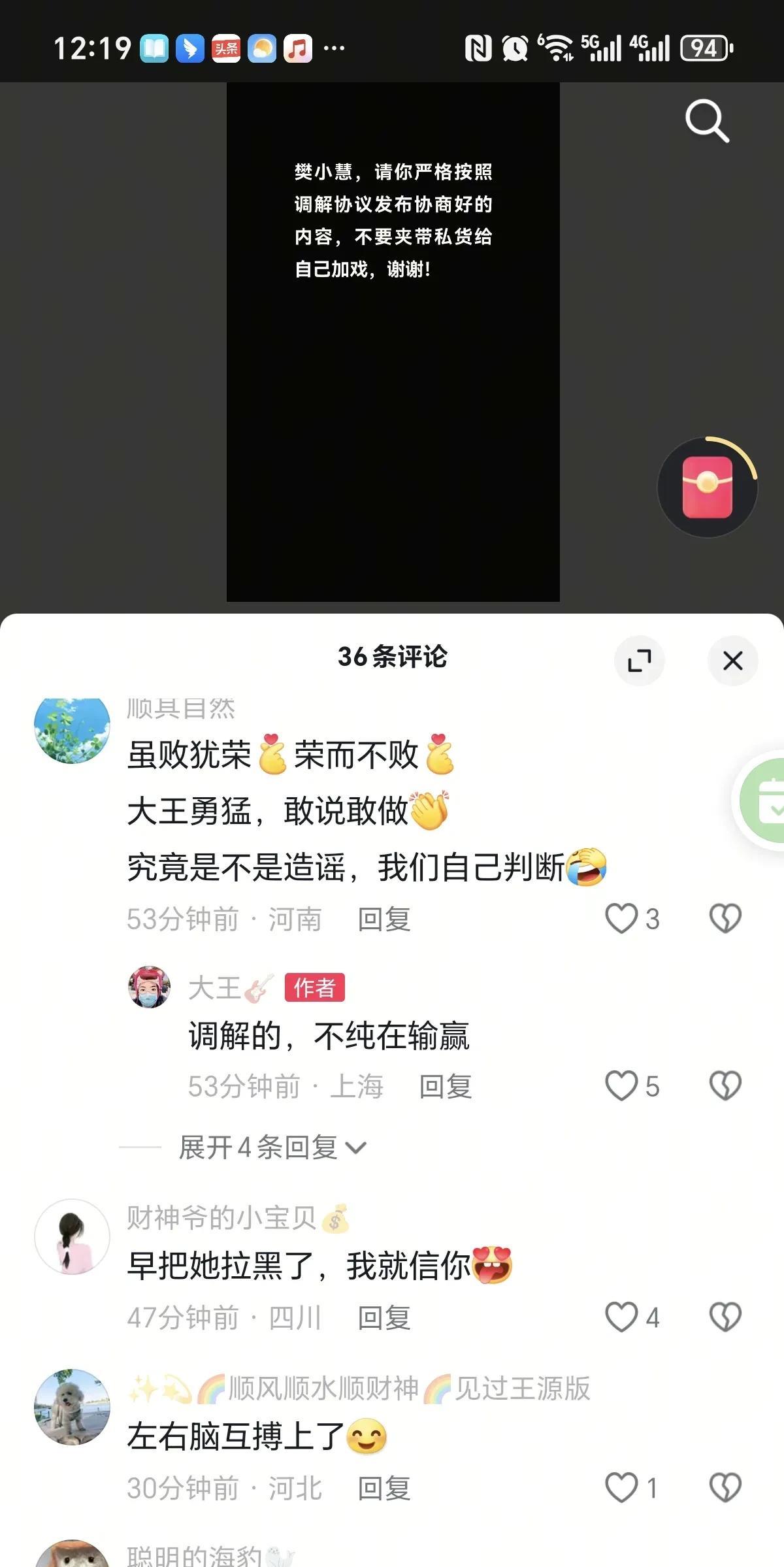 樊小慧更新抖音,起诉了一批黑粉! 从去年到现在, 有些人专门给她 网爆她, 忍无可忍, 她决定拿起武器捍卫自己权利! 她直接把, 法院调解声明,协议书, 晒了出来! 谁知道当事人, 一蹦老高 压根不服气! 认为是调解书, 并不是输了官司! 关于会不会告告前夫哥一家诽谤, 樊小慧评论区回复, 去年已经提交了! 樊小慧不是弱者, 她能够扭转乾坤, 成为1000多万的网红大咖 你闲着没事 诽谤她做什么! 她拿着很多资料, 要挨个起诉, 快看看, 有没有对她不好的言语, 小心她起诉你啊!