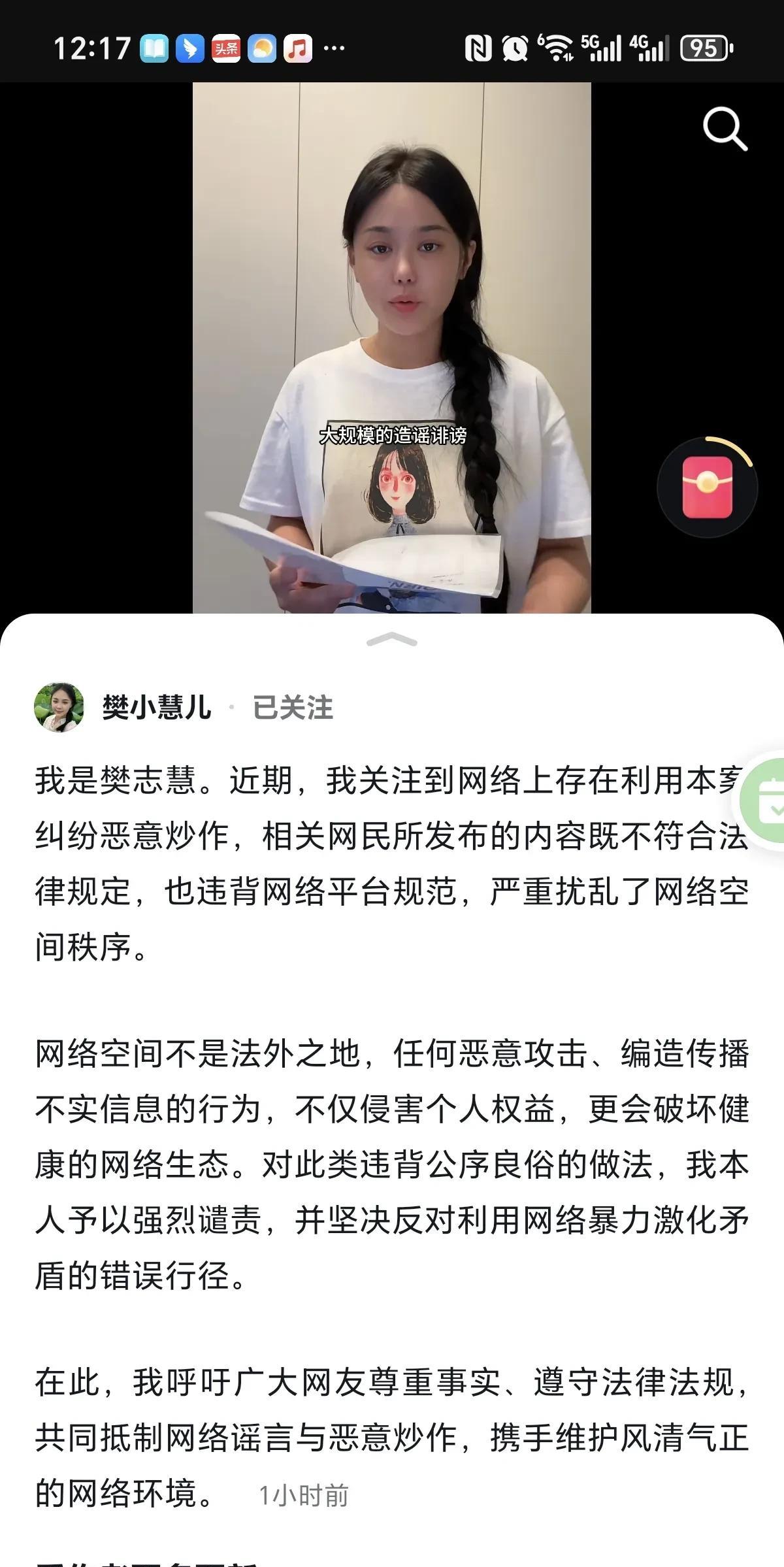 樊小慧更新抖音,起诉了一批黑粉! 从去年到现在, 有些人专门给她 网爆她, 忍无