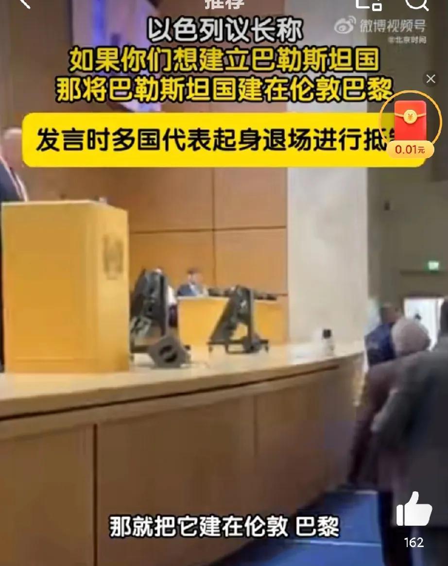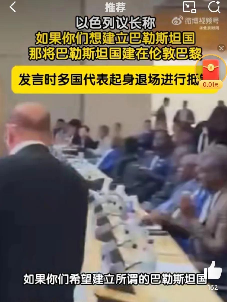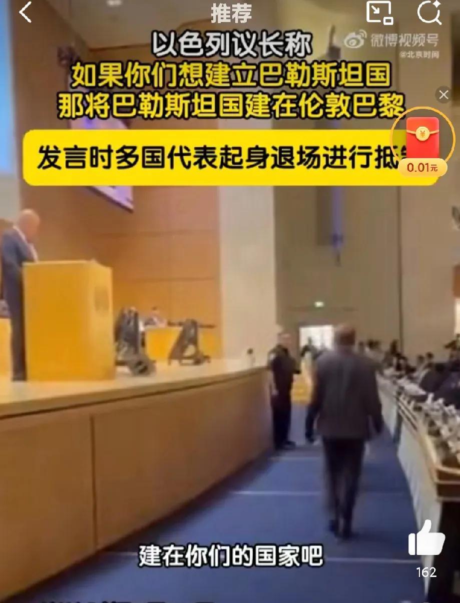 罕见一幕在第六次世界议长大会上出现! 昨天,当地时间7月30日,第六次世界议长大会上。以色列议长的发言遭到大会多国抵制,并采用退场的形式表示对以色列在巴勒斯坦的行为表示不满。 但是,以色列外长发言剑指英法!,他称,“如果你们想建立巴勒斯坦国,那就将巴勒斯坦国建在伦敦、巴黎”。 前几日,法国,英国等相继承认巴勒斯坦国,并且,加拿大也有意加入“承认”的行列。 由于越来越多的国家对巴勒斯坦国家的承认,这给以色列吞并加沙地带的领土带来了阻力。 但是,以色列总理却在本国电视台公开宣称,他们吞并加沙地带得到了美国的“批准”!