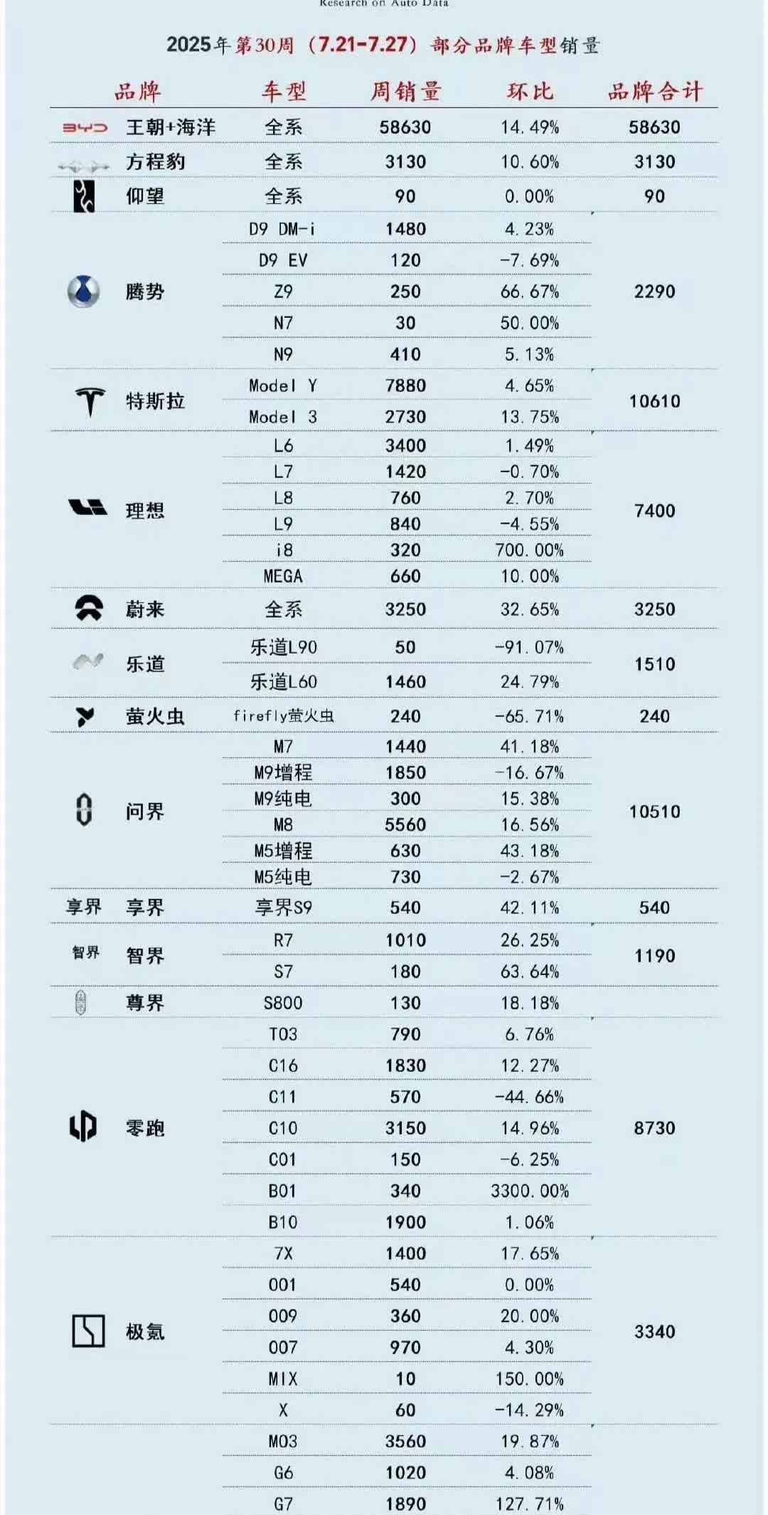 你敢想,问界M7上周销量在20-30万价位仅次于理想L6位居第二?这还有换代的必要? 上周问界成为新势力唯一破万的存在。这个很正常,毕竟当下只有问界存量订单最多。 最大的惊喜当属传奇奈黑王-问界M7,都已经公布新款的情况下,还能比上上周销量大涨近一半,周销量达到1440台! 真不敢想象全新换代的问界M7上市后,销量会达到什么恐怖的存在!!!