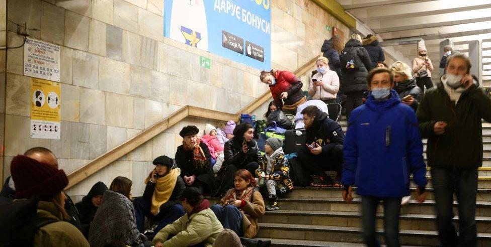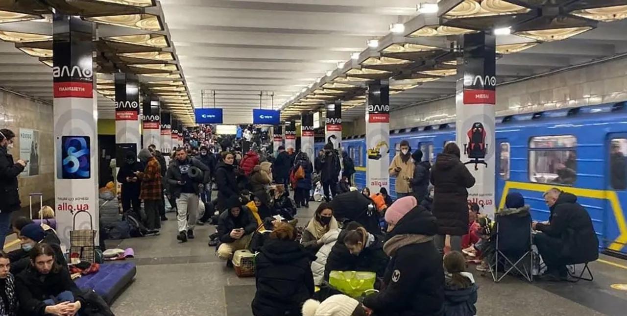 一些乌克兰人在基辅地铁站避难的图片,最后一张是乌克兰当地媒体发布的昨天人们在地铁