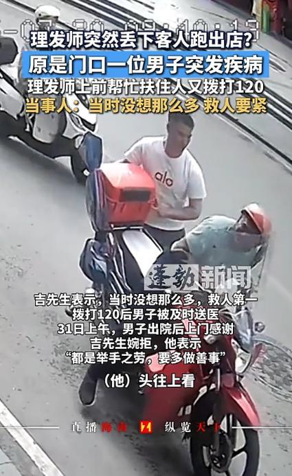 太惊险了!上海一理发师给顾客理发时,突然冲出门外,原来是他发现门外有异常,一男子不停抽搐,随时要摔倒,随即冲出店外,稳住男子电动车并及时拨打急救电话,原来男子是脑伤后遗症发作,理发师的及时救援挽救了他的生命!网友:这才是真正的“见义勇为”。 根据蓬勃新闻7月31日的视频,上海的午后,一家街角理发店里,理发师吉先生正专注地为客人修剪鬓角。推剪的嗡鸣声与空调的轻响交织,店内弥漫着洗发水的淡淡清香。 突然,玻璃门外传来一阵刺耳的金属摩擦声——一辆电动车失控地左右摇晃,车上的中年男子身体僵直,脖颈后仰,四肢不受控地剧烈抽搐,眼看连人带车就要栽向人行道边缘。 吉先生几乎是本能地甩开理发围布,一个箭步撞开店门冲了出去。他一把攥住电动车后架,用全身力气抵住车身,硬生生将车稳住。 倒地男子口角溢出白沫,牙关紧咬发出咯咯声响,抽搐幅度越来越大。吉先生迅速蹲下身,一手托住对方后颈防止磕碰,另一手掏出手机拨打120,声音急促却清晰:“这里是中山路理发店门口!有人突发抽搐昏迷,呼吸急促,需要急救车!” 等待救援的每一秒都格外漫长。吉先生记得曾在急救培训中学过,抽搐时呼吸道堵塞最致命。他侧翻男子身体,用袖口小心擦去其口鼻分泌物,又解下自己围巾垫在对方头下。路过的行人被这一幕惊住,有人想帮忙却手足无措,只能焦急地围着两人打转。 约五分钟后,男子抽搐渐停,睁开眼时仍满脸茫然。急救车呼啸而至,医生检查后松了口气:“脑外伤后遗症引发的癫痫,幸亏没呛到分泌物!”原来该男子两年前遭遇车祸,留下脑损伤隐患,当天骑车间隔性头痛发作,瞬间失去意识。 若电动车栽进车流,或呕吐物阻塞气管,后果不堪设想。事后人们才知道,吉先生的“本能”背后是持续的准备。他抽屉里总放着急救手册,墙上贴着心肺复苏步骤图。 去年目睹同行用海姆立克法救下窒息儿童后,他咬牙自费报了救护课程。这次他坦言:“冲出去时脑子一片空白,但手该怎么动,早就练成肌肉记忆了。” 惊险视频被路人传上网后,“理发师冲出店门救人”的词条火速刷屏。网友留言:“他甩开顾客的瞬间,连理发围布都在飞!这才是城市侠客!”更多人感慨于那份未卜先知的警觉——当全店顾客都在镜前闭目养神时,唯有吉先生捕捉到门外微弱的异响。 有人联想到河南确山县的理发店主:当脑梗老人昏倒在理发椅时,店主掐人中的手法同样快准稳。更早前,云南理发师赵真仅用10秒海姆立克法救回噎住的孩子,被赞“黄金十秒战神”。 这些散落街巷的普通人,总在危局中化身“第一响应人”。正如网友所说:“所谓英雄,不过是把‘可能会用到’的技能,日复一日认真准备着。” 一场街头的生死救援,让吉先生成了新闻里的“超人”。但他自己最难忘的,却是男子清醒后紧握他手的温度:“他抖得说不出话,可眼里全是劫后余生的泪光。” 这座城市每天流动着千万故事。有人在意外中学会敬畏脆弱,有人在平凡里磨砺出锋芒。而真正托住生命的,从来不是偶然的运气,是像吉先生这样——当理发推剪与急救知识在同一个工具箱里碰撞,当敏锐双眼始终望向人群而非镜台,方能在电光石火间,为陌生人劈开一条生路。