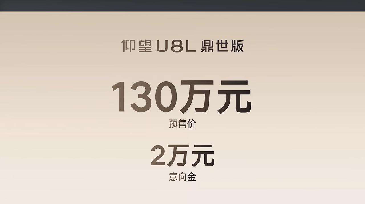 电车通受邀参加仰望U8L鼎世版预售的线上发布会,新车的预售价为130万元,比仰望