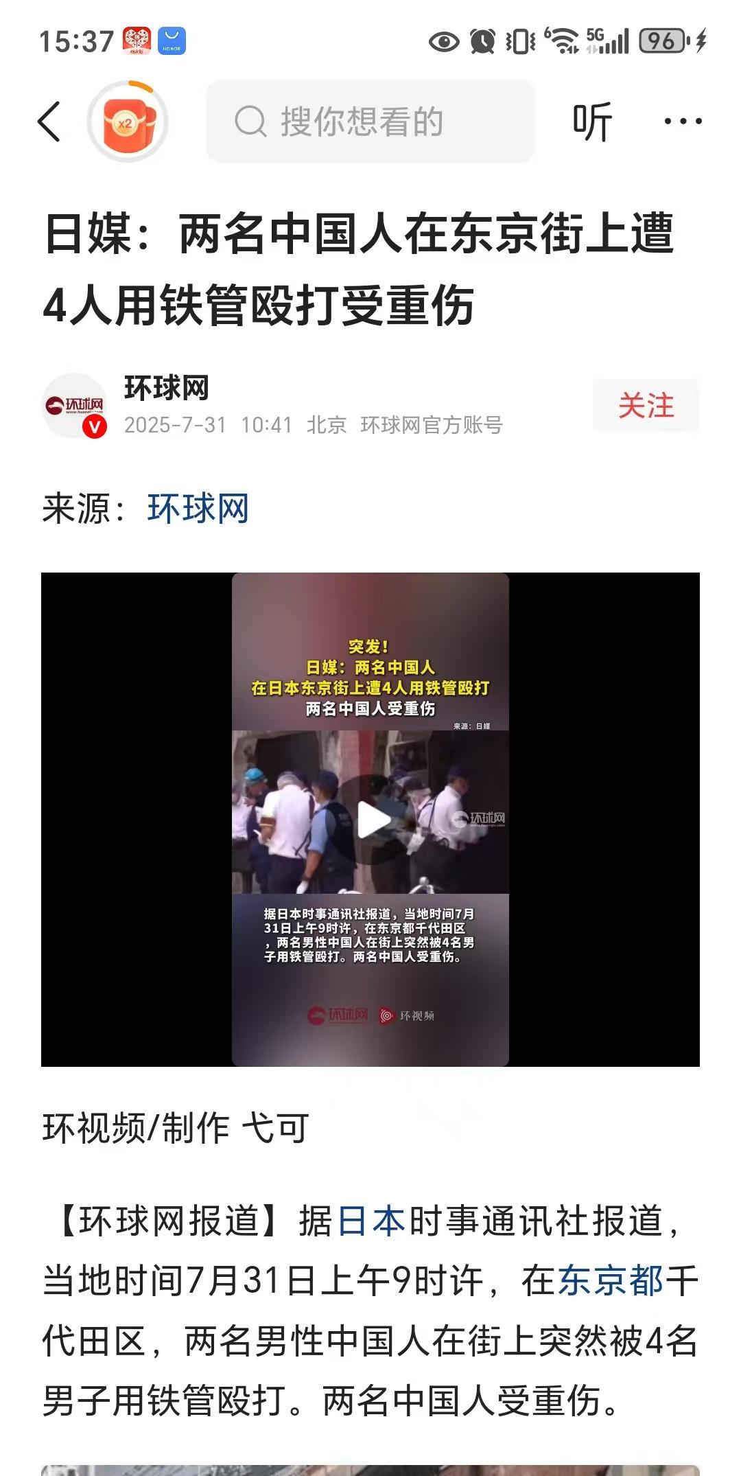 就在今天,两名中国人在日本东京被被四人用铁棍殴打成重伤。 中国的网友,没有任何人