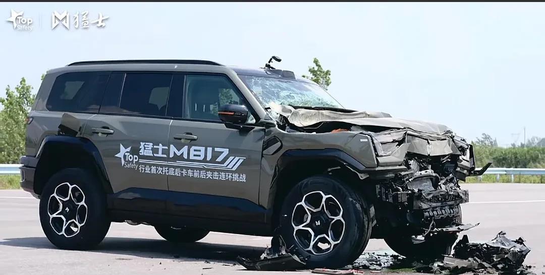 国企撞击测试还是太老实,学学新势力车企,如果猛士M817追尾重卡,把重卡后车轮顶起来,那将全网沸腾,成为第一辆越野车干过重卡的车企。 那个撞击货车车轮离地的测试视频,将成中国汽车行业标志性事件,第一次把公众的智商按在地上。