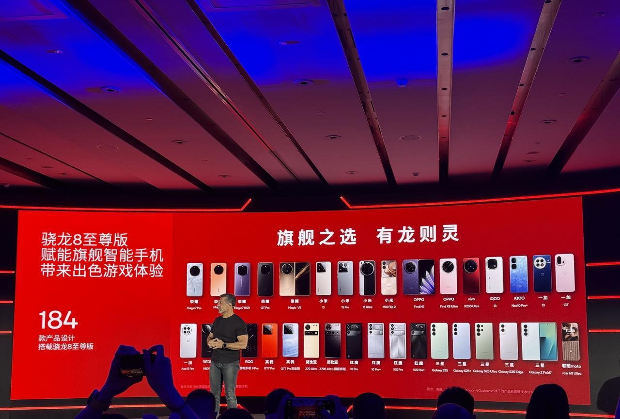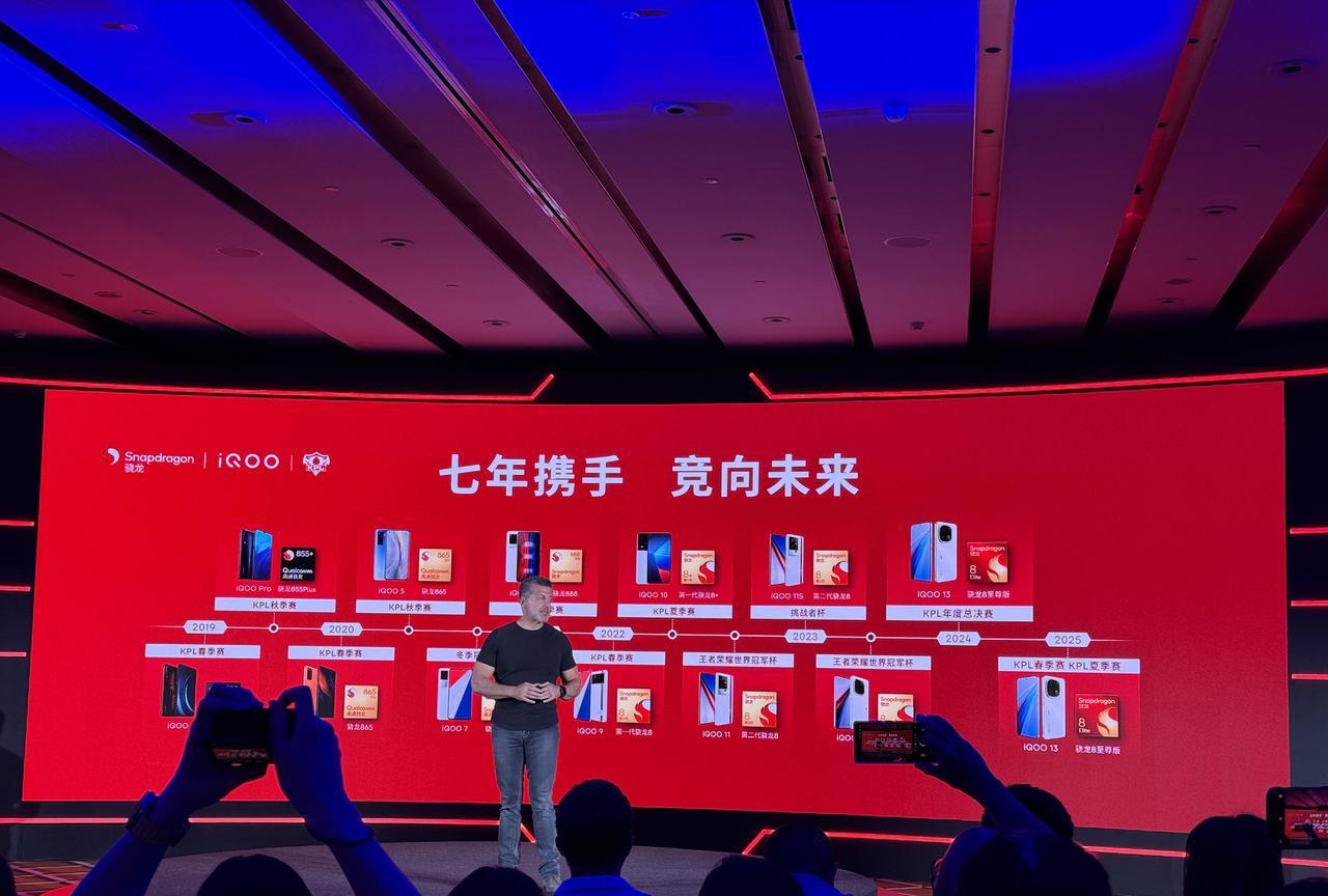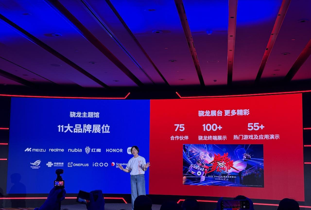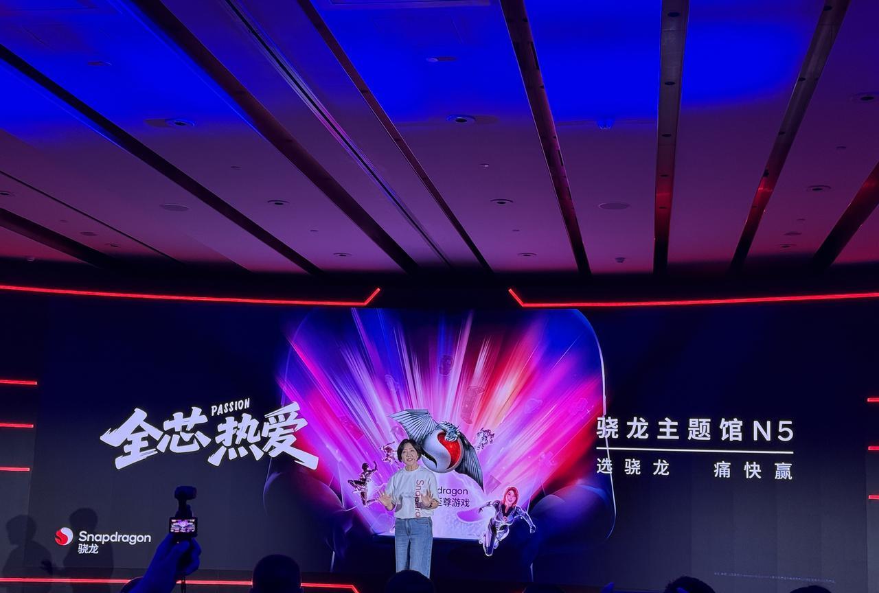 赶在ChinaJoy前,高通举办了场骁龙游戏技术赏,也算是提前做个预热和分享吧,今年是高通第七年参加CJ,同样还是包下了一整个场馆,这次选择了更大的N5馆。iQOO产品副总裁罗峰上台顺便吹了吹自家的产品,聊了下和高通的紧密合作,截至目前搭载骁龙8至尊版的产品达184款,有你们在用的手机吗[我想静静]