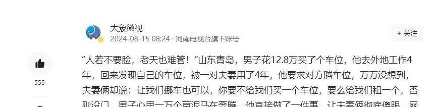 一点脸都不要了?山东青岛,男子刚花12.8万元买了个车位,就因为工作去了外地四年