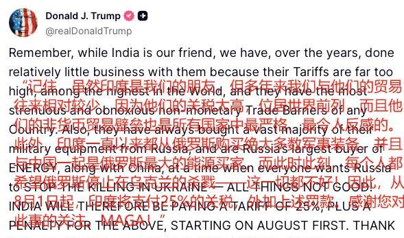莫迪老仙自视甚高 特朗普关税大棒砸向印度 刚刚(7月30日),特朗普在其社交媒体