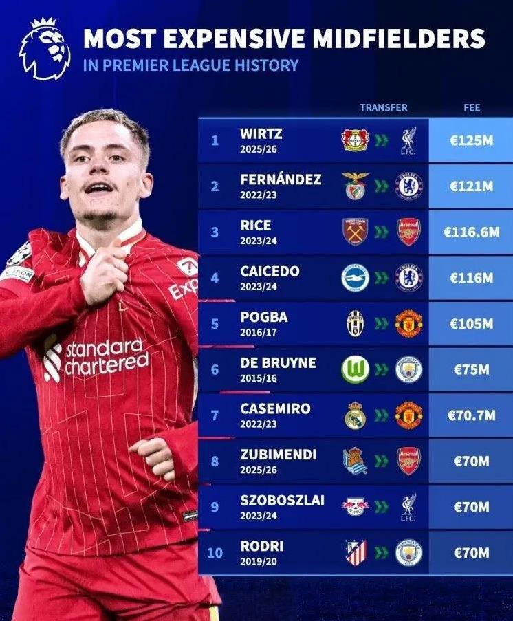 绿茵大数据! ★瓜迪奥拉成为足球史上第一位引援总花费超过20亿欧元的主教练! ★被低估了! 过去10个赛季助攻次数最多的球员是托马斯·穆勒的118次,而不是德布劳内、梅西、萨拉赫。 ★欧洲四大联赛英超、西甲、德甲、意甲历史单赛季进球最多的球员:分别是哈兰德、梅西、莱万、伊瓜因和因莫比莱。 ★奥斯梅恩以7500万欧元成为土超联赛历史上转会费最贵的球员! ★英超历史中场球员转会费排行榜!维尔茨最贵。 ★路易斯·迪亚斯以7000万欧成为拜仁队史第三贵引援! ★忠诚换成了球衣输出! 哲凯赖什的14号球衣销量打破了阿森纳球衣历史销售纪录,自亨利之后,这么多年来,14号寄托了很多枪迷的期望与梦想!大家对穿14号的前锋太饥渴了!