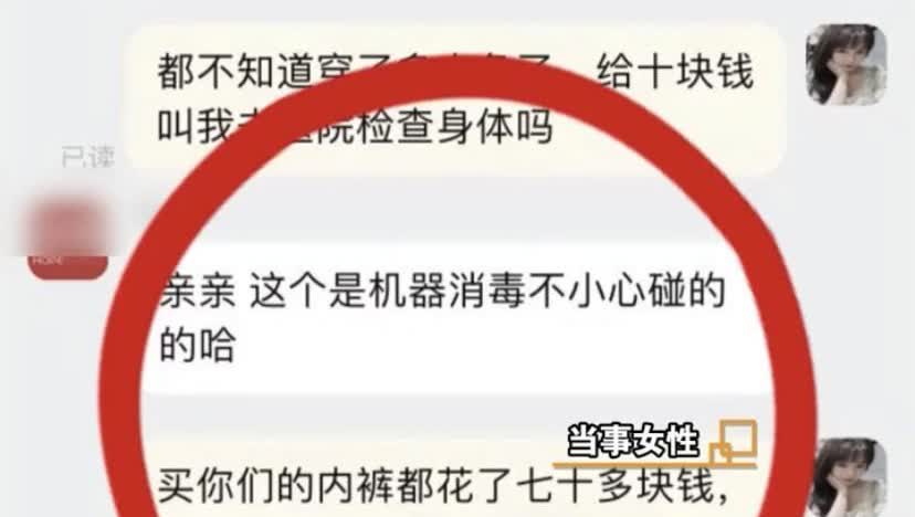 伤害性不高,侮辱性极强!江苏无锡,女子洗完澡后换上了一条一次性内裤,随后发现内裤裆部有污渍,而且不止一条,于是找到当初网购商家的客服讨要说法,不料,客服表示可以赔10块钱,直接把当事人都给气笑了! 这事儿发生在江苏无锡,说的是一个消费者权益的事儿。有个姑娘在网上买了一盒一次性内裤,结果用起来发现卫生状况挺糟糕,气得不行,对商家的处理方式特别不满意。 姑娘洗完澡后,就穿上了其中一条,结果没多久发现内裤裆部有块咖啡色的污渍,像是泥点子。她一开始还以为是自己不小心弄脏的,就换了一条新的,结果还是有污渍。这下她明白了,原来整盒内裤都有问题。她赶紧找商家客服,想讨个说法,要点赔偿。结果客服却说,这是机器消毒时“不小心碰到的”,只愿意赔10块钱。这话让姑娘哭笑不得,一气之下,她就把这事儿发到了网上。 网友们一看,都炸了锅,有的网友说能理解姑娘的愤怒,还有的网友说应该按照法律维权,主张“退一赔三”。不过,根据《消费者权益保护法》,要三倍赔偿的话,得商家有欺诈行为才行;如果只是生产时疏忽了,那就得按实际损失来赔。反正啊,10块钱肯定解决不了姑娘的不适和健康风险。后来,那个女孩子在网上说了自己的事情,一下子就引起了大家的注意。虽然这事儿最后是怎么解决的我们不太清楚,但它给商家提了个醒,得对自己的产品质量上心。同时,也告诉咱们消费者,要是自己的权益被侵犯了,得勇敢地站出来说话。