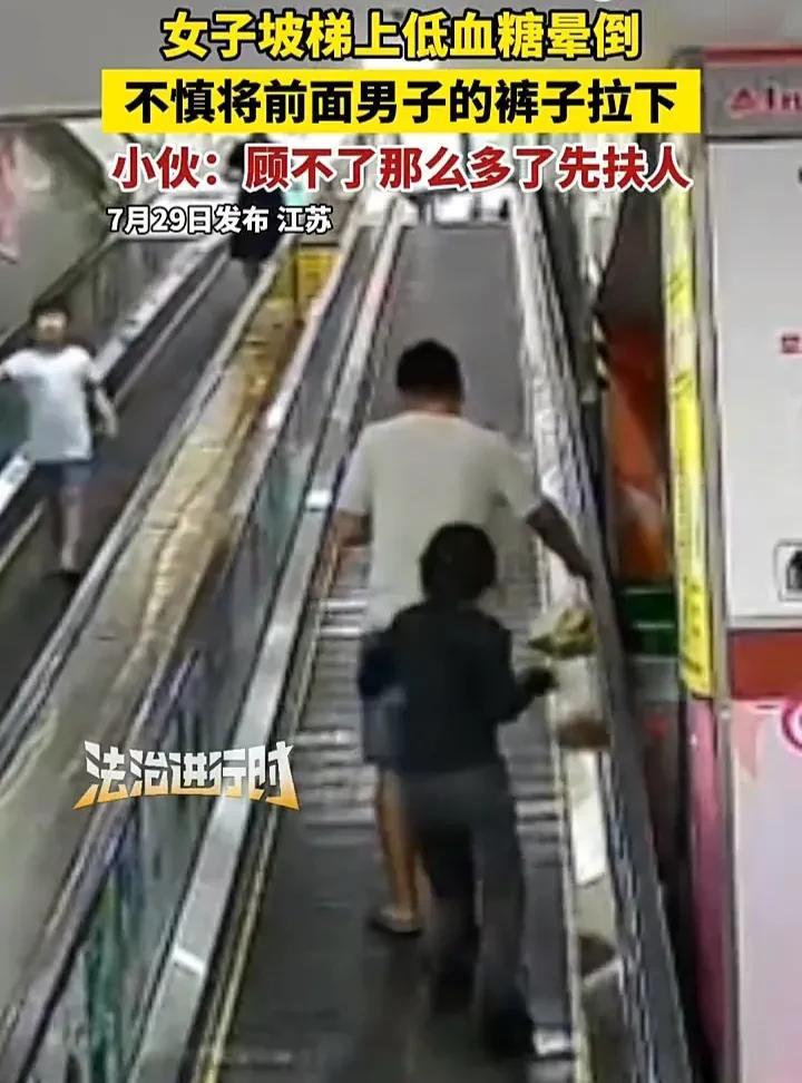 太暖心了!7月29日,江苏一家商场内,一名女子在乘坐扶梯时,突然低血糖晕倒,刚好她前面站了一位男子,便不慎将男子的裤子扒了下来,男子一脸疑惑地转过头,发现女子不对劲后,先将女子扶了起来,自己连裤子都没来得及穿。