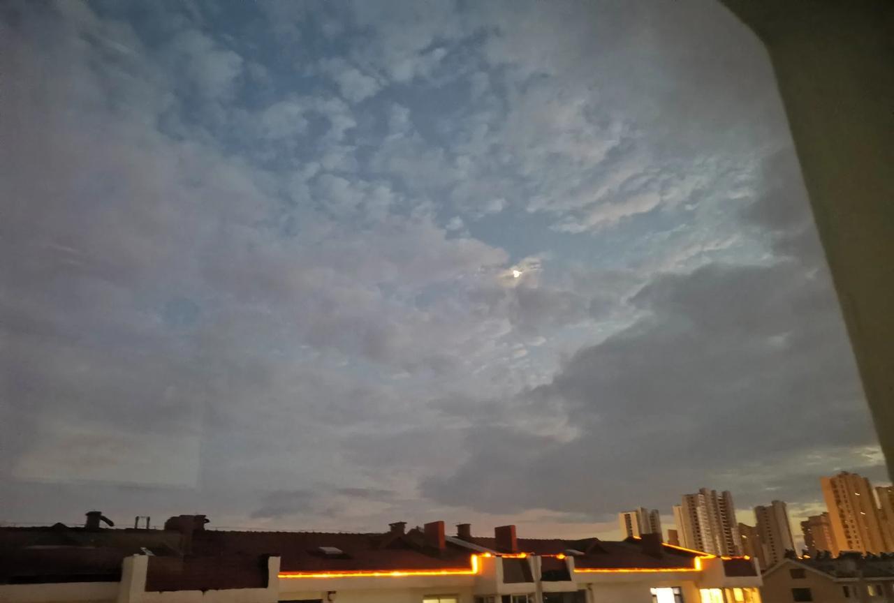 今晚仰头望去,天边云霞幻化出凤凰的轮廓,翎羽般的云纹清晰可辨。月亮时隐时现,恍若