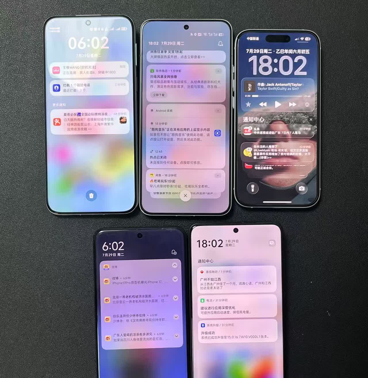 只看通知栏的话,你会选谁? 主包终于集齐华米ov+果五家的状态栏和通知栏了 主包私心还是觉得ios26不管是状态栏还是通知栏的颜值无人能敌阿 特别是OPPO虽然已经很有果子以前的风范了 但是有了新欢ios26之后主包眼里已经容不下其他人了 米子的自定义主题还有状态栏也是香香的 喜欢!! 全都到主包碗里来!