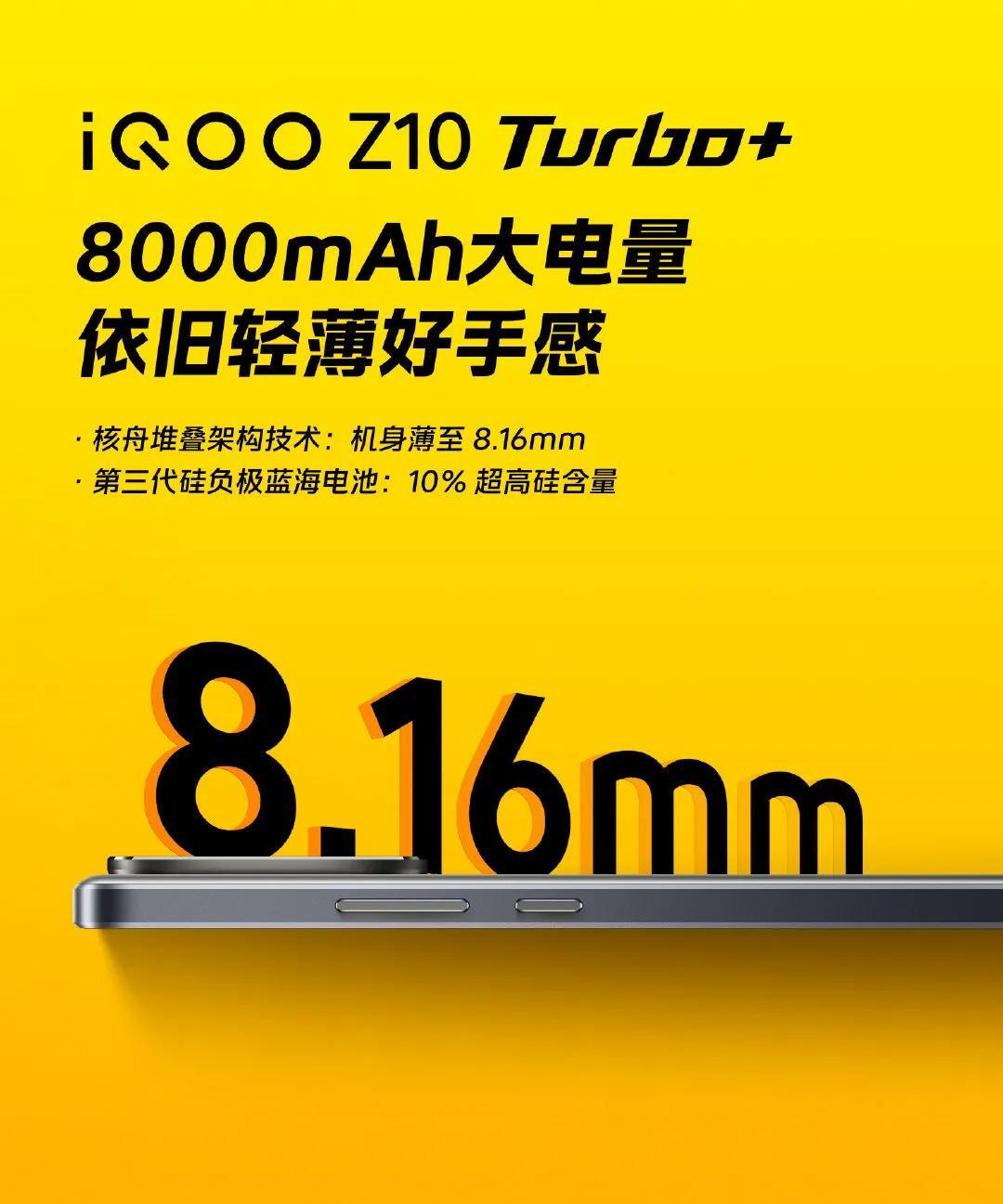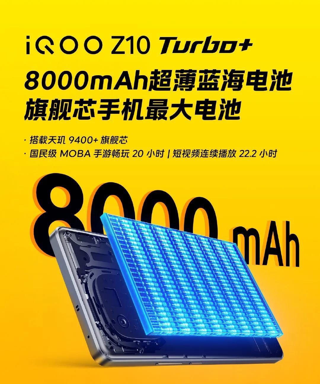 过去4500毫安的手机就是大电池手机了,现在安卓手机没有6000毫安不敢说是大电池,7000毫安以上的都非常多,堪比充电宝了,然后。。。iQOO竟然推出了8000毫安电池的手机,而且还不是那种主打大电池续航性能一般的手机。 这次#iQOO Z10 Turbo+# 用的可是旗舰芯片天玑9400+芯片,性能强大,能耗还低。然后电池又达到了恐怖的8000毫安级别,打王者荣耀从上线打到被系统踢下线都不会没电,太顶了。 没电了也不怕,这次Turbo+还有全场景直驱供电,游戏中可以直接给主板供电。 这款手机是目前搭配旗舰芯片的手机里电池最大的,完全针对[性能强+续航顶]的用户需求。屏幕也很顶,144Hz光域护眼屏,极地灰新配色质感高级,亮黄圈边Deco辨识度拉满,而且价格还实惠,2000元档位就可以体验到性能续航双王炸的产品,游戏党们有福了。 下个月7号19:00发布,现在就开启预约了。