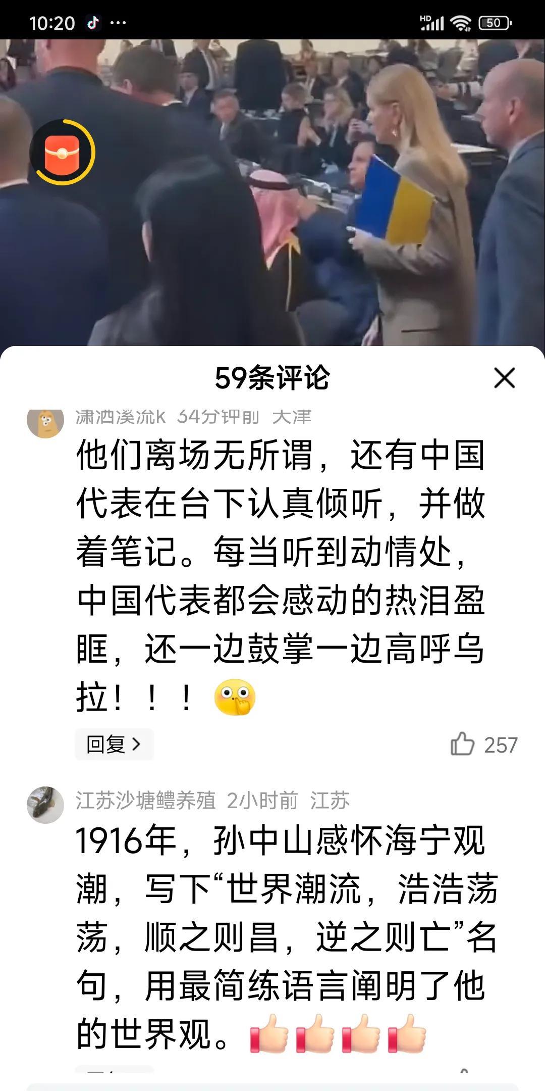 离席的都是欧洲那些烂蒜!别扯上“各国”!这些国家装腔作势,侵略伊拉克阿富汗叙利亚、轰炸南联盟也门利比亚你们有几个能逃脱了干系?因为这些战争行径都是打着北约、联合部队的命运进行的,这时候装起文明来了?尤其想对评论区里的中国人说几句话:别酸言酸语的嘲讽自己国家,你没有国际视野,充其量是个盲目跟风的人!
