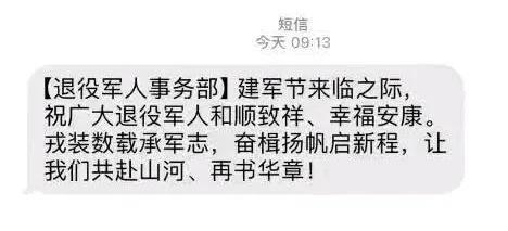 退役军人在八一建军节到来之际收到来自退役军人事务部的慰问是件幸福的事情!虽然只是一条短信,但它代表了国家对退役军人的认可,社会对退役军人的尊重,肯定了退役军人为国家做出的贡献!退役军人能够在八一建军节到来之际收到各种方式的慰问和祝福都是一件高兴的事,相信退役军人政策会越来越好。